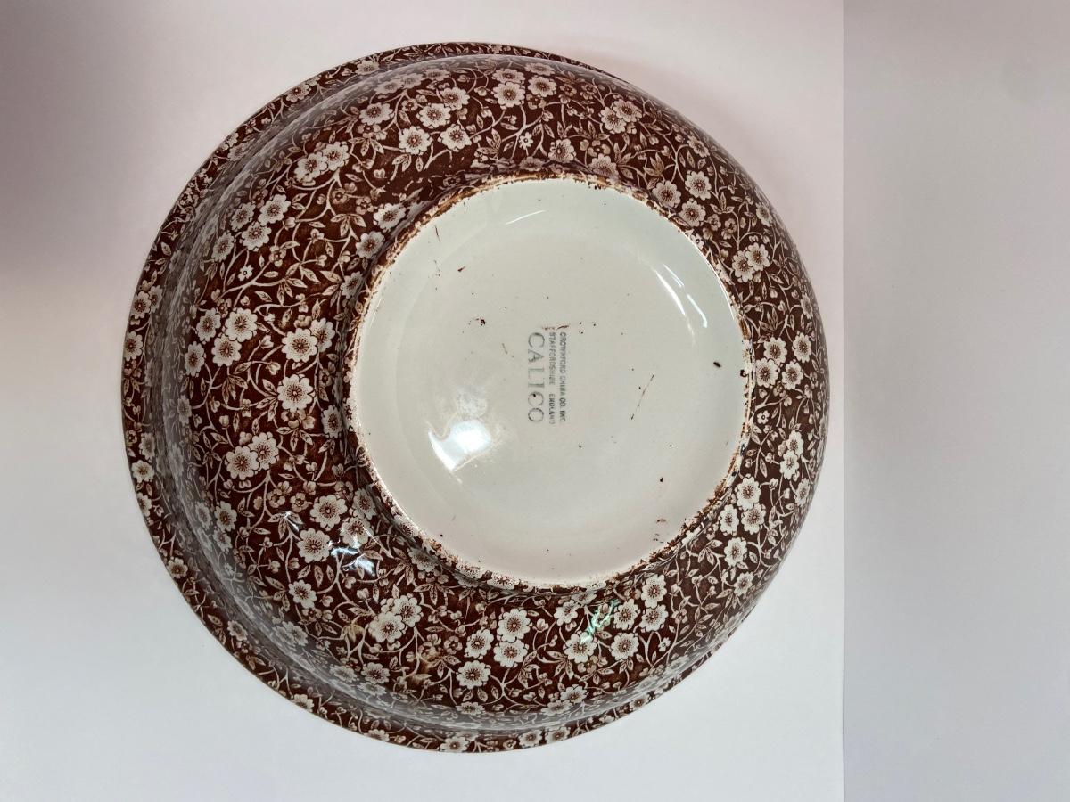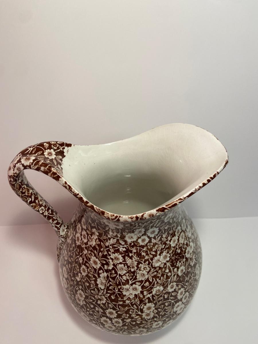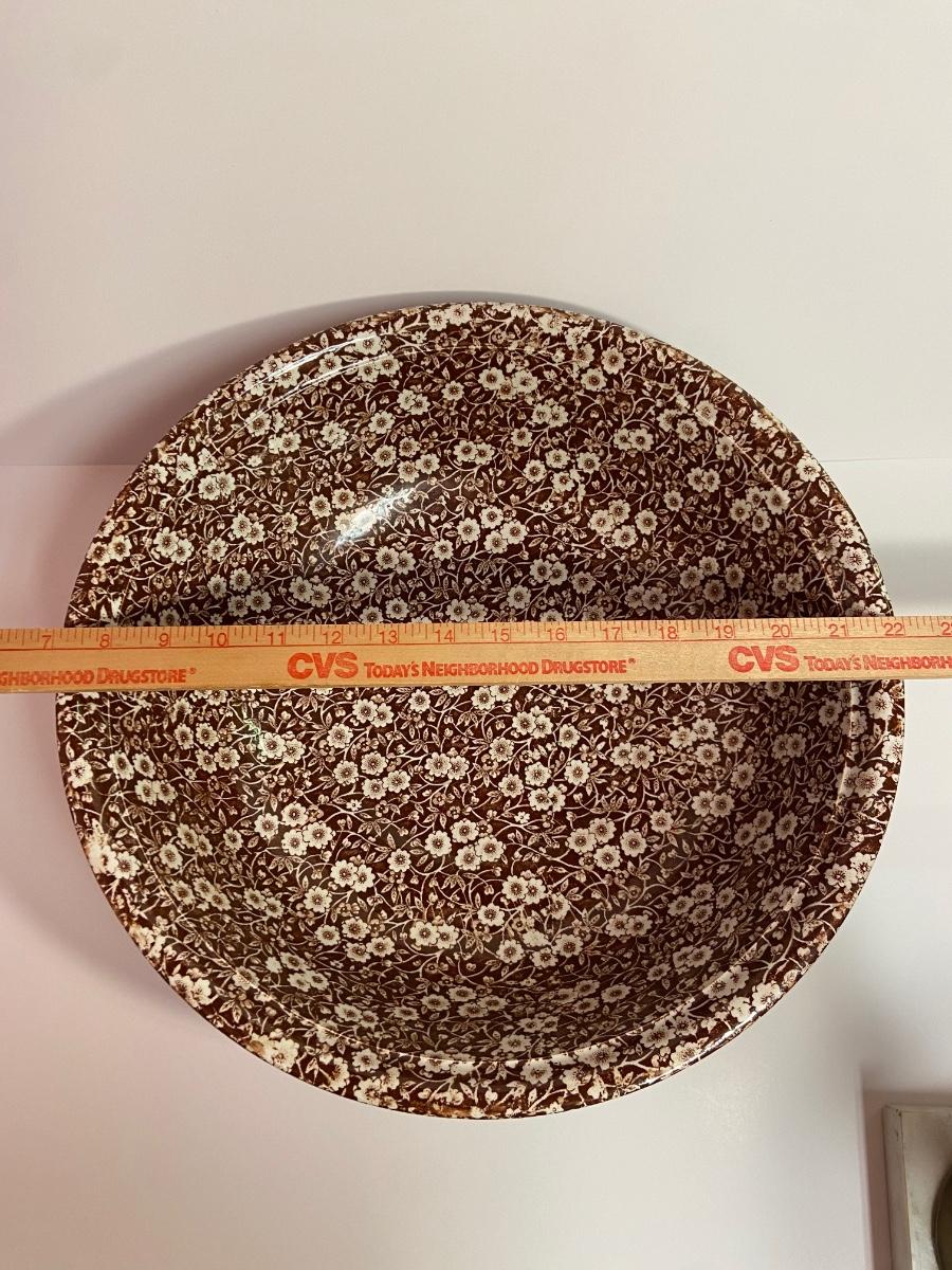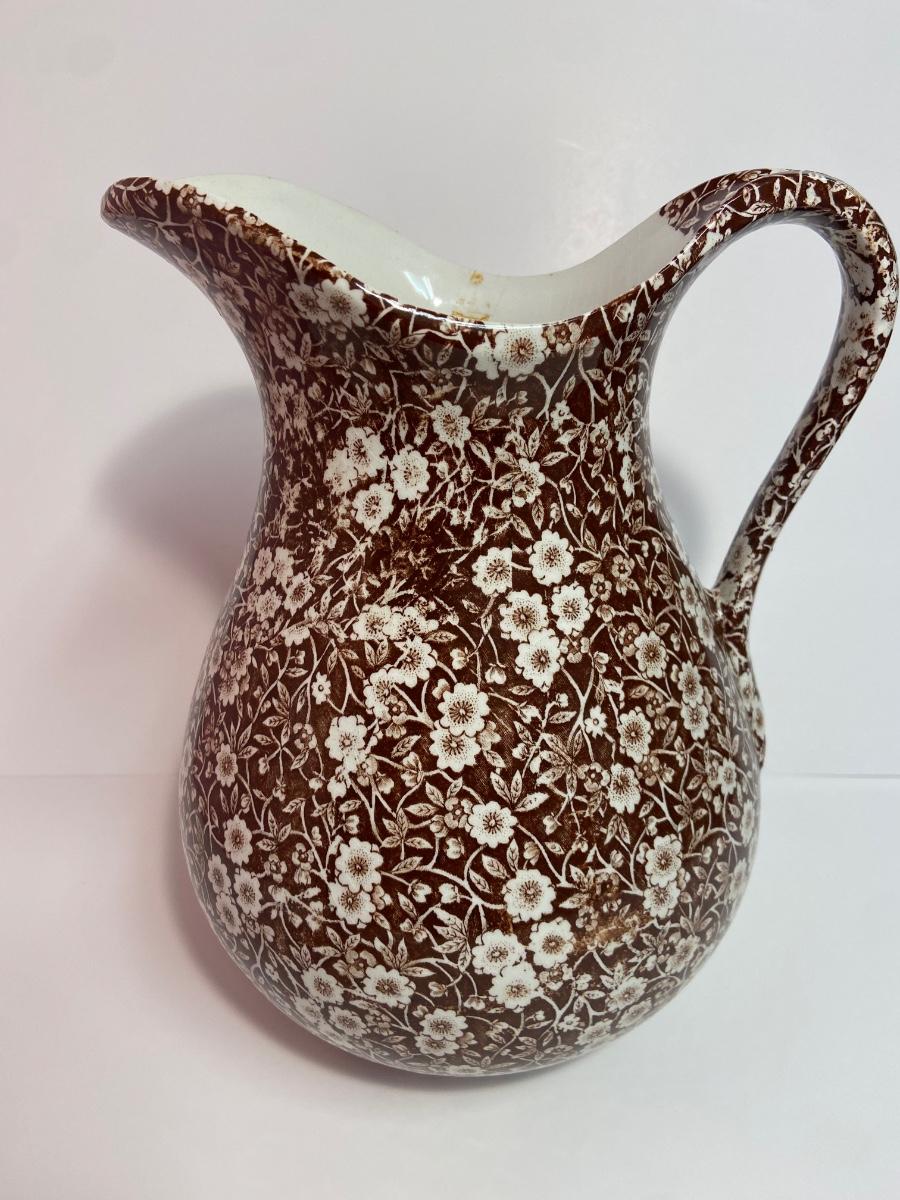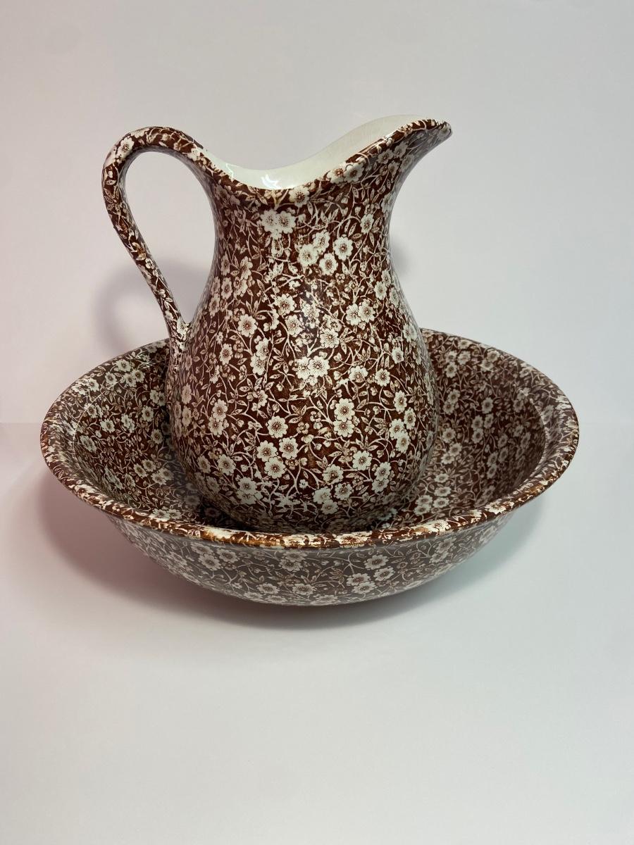BROWN CALICO by Staffordshire, 128 oz OVERSIZED Pitcher & Wash Basin, Royal Crownford Ironstone, This is an EXTREMELY LARGE pitcher and wash basin. The pitcher is 11 1/2 inches tall and the wash basin is 15 inches across.
