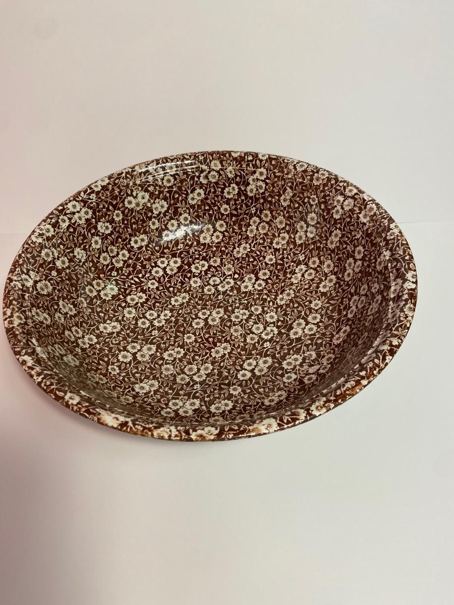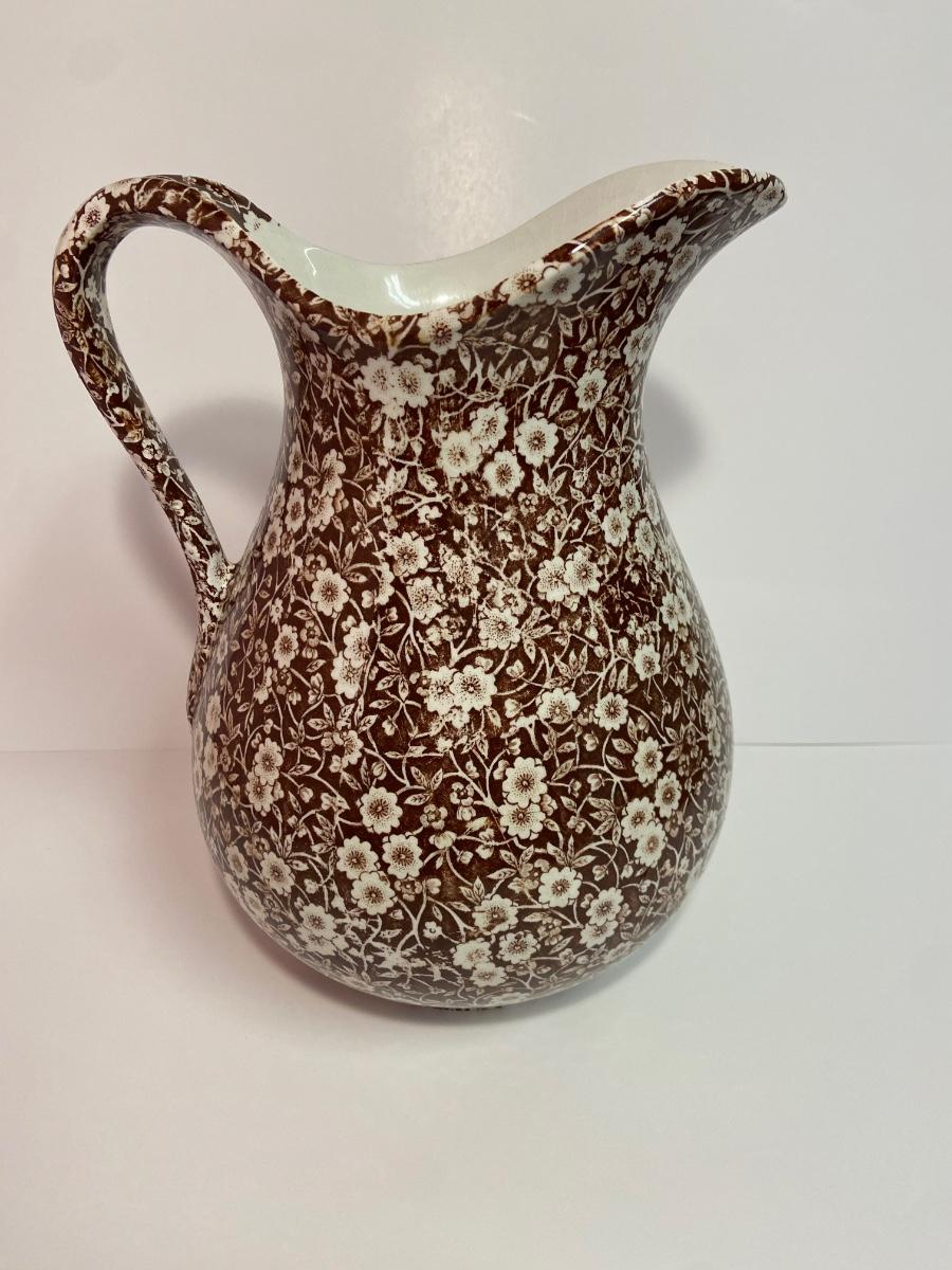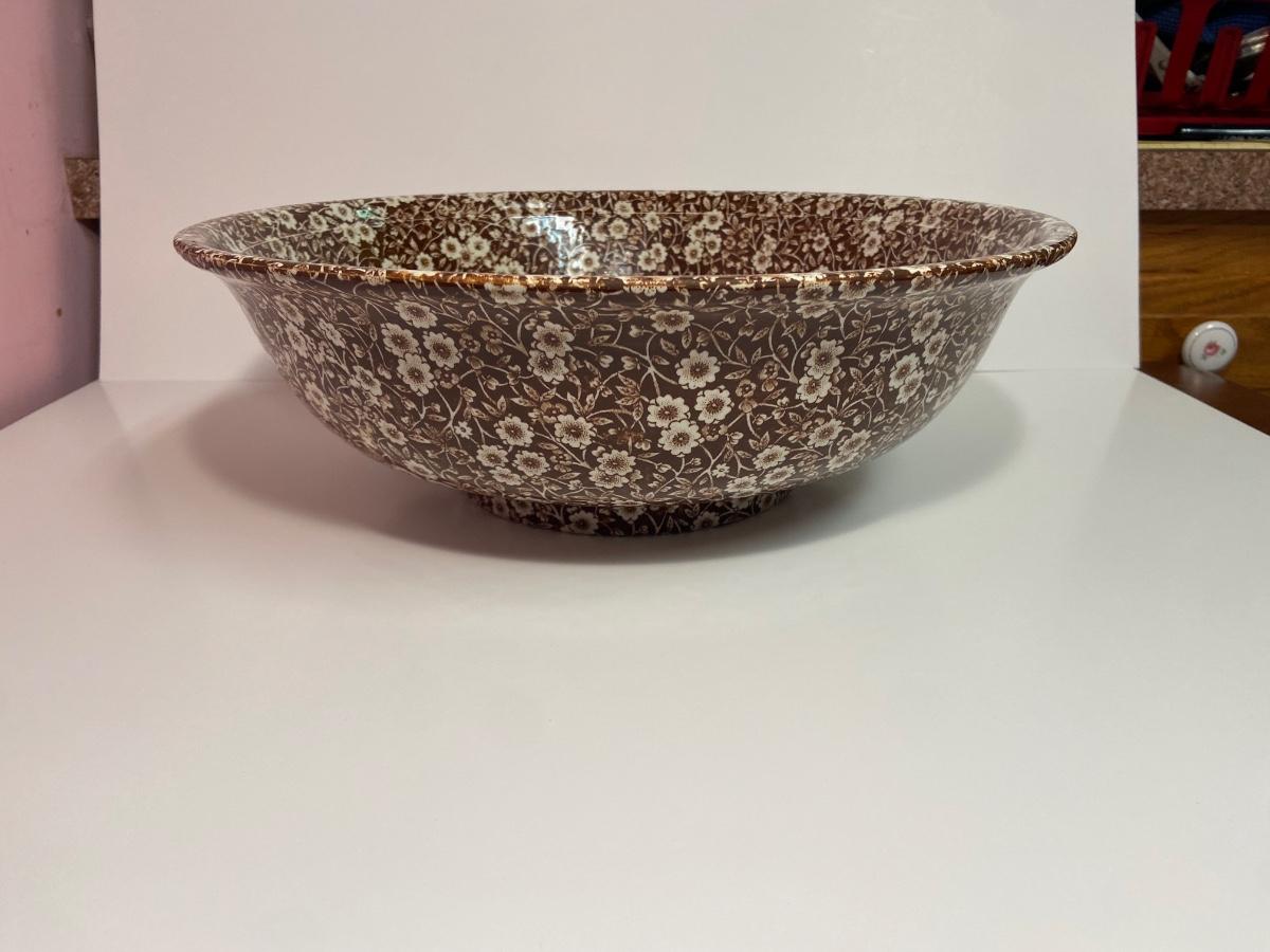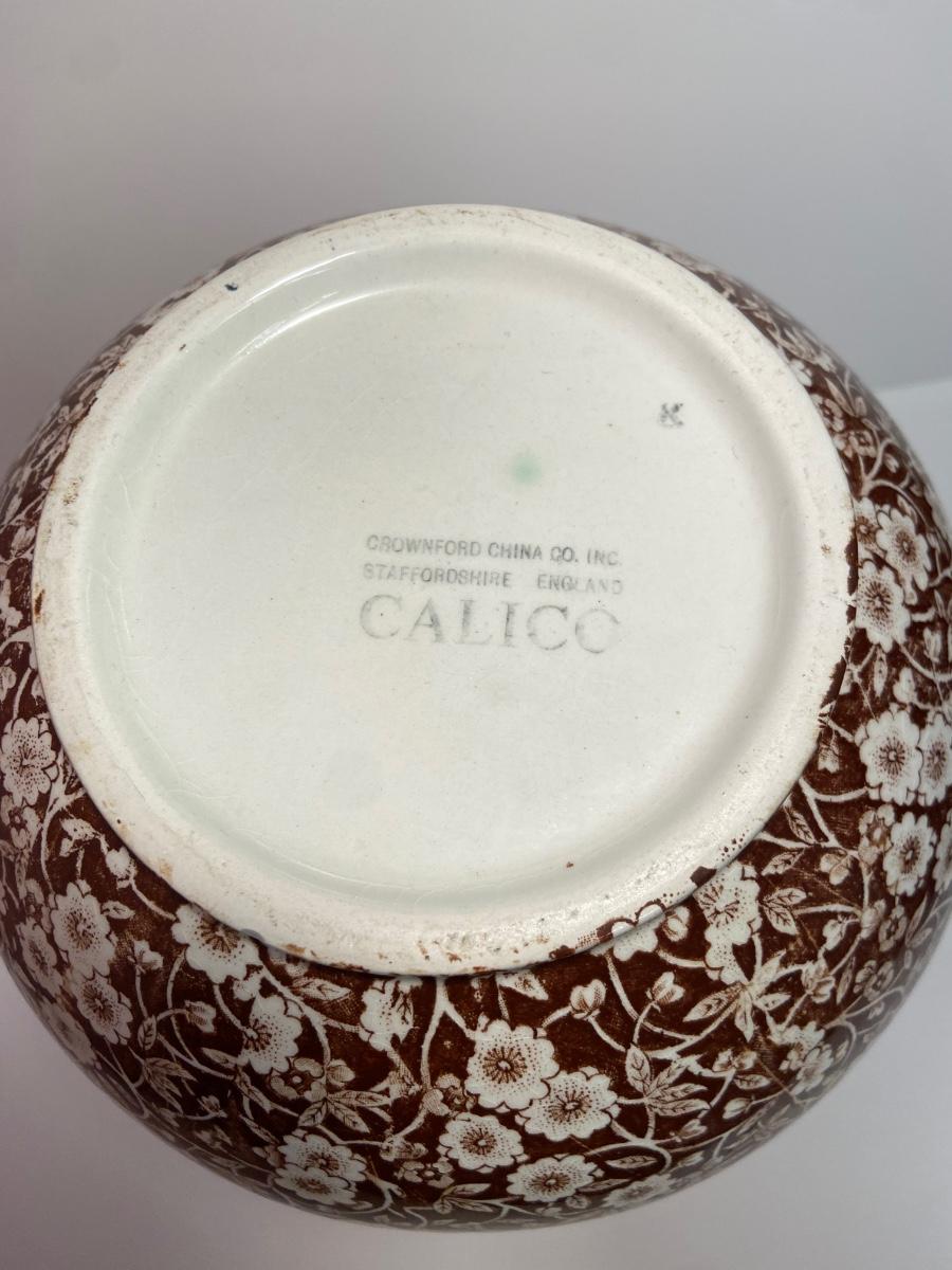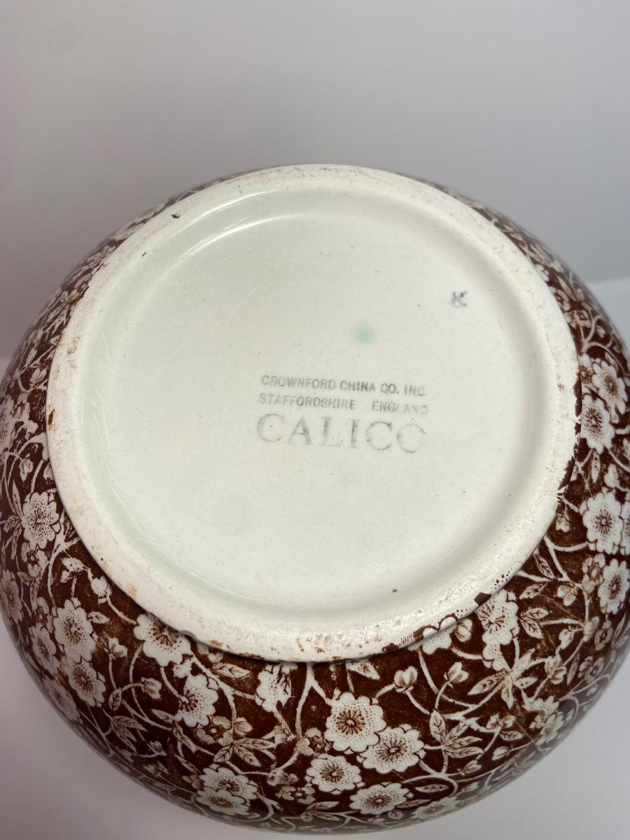 BROWN CALICO by Staffordshire, 128 oz OVERSIZED Pitcher & Wash Basin, Royal Crownford Ironstone, This is an EXTREMELY LARGE pitcher and wash basin. The pitcher is 11 1/2 inches tall and the wash basin is 15 inches across.