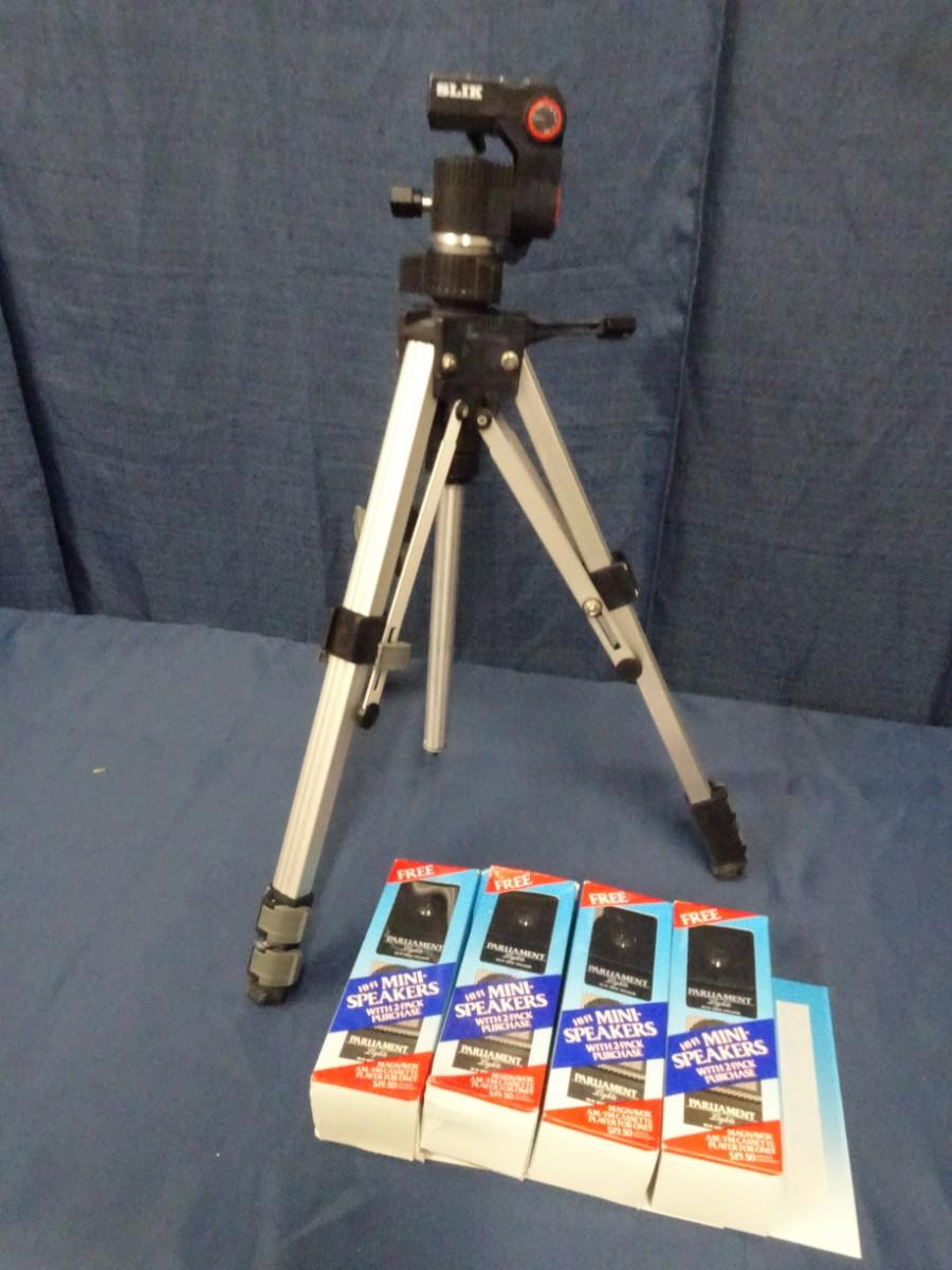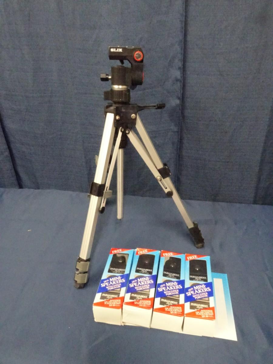 LOT 208. TRIPOD AND MINI PSEAKERS