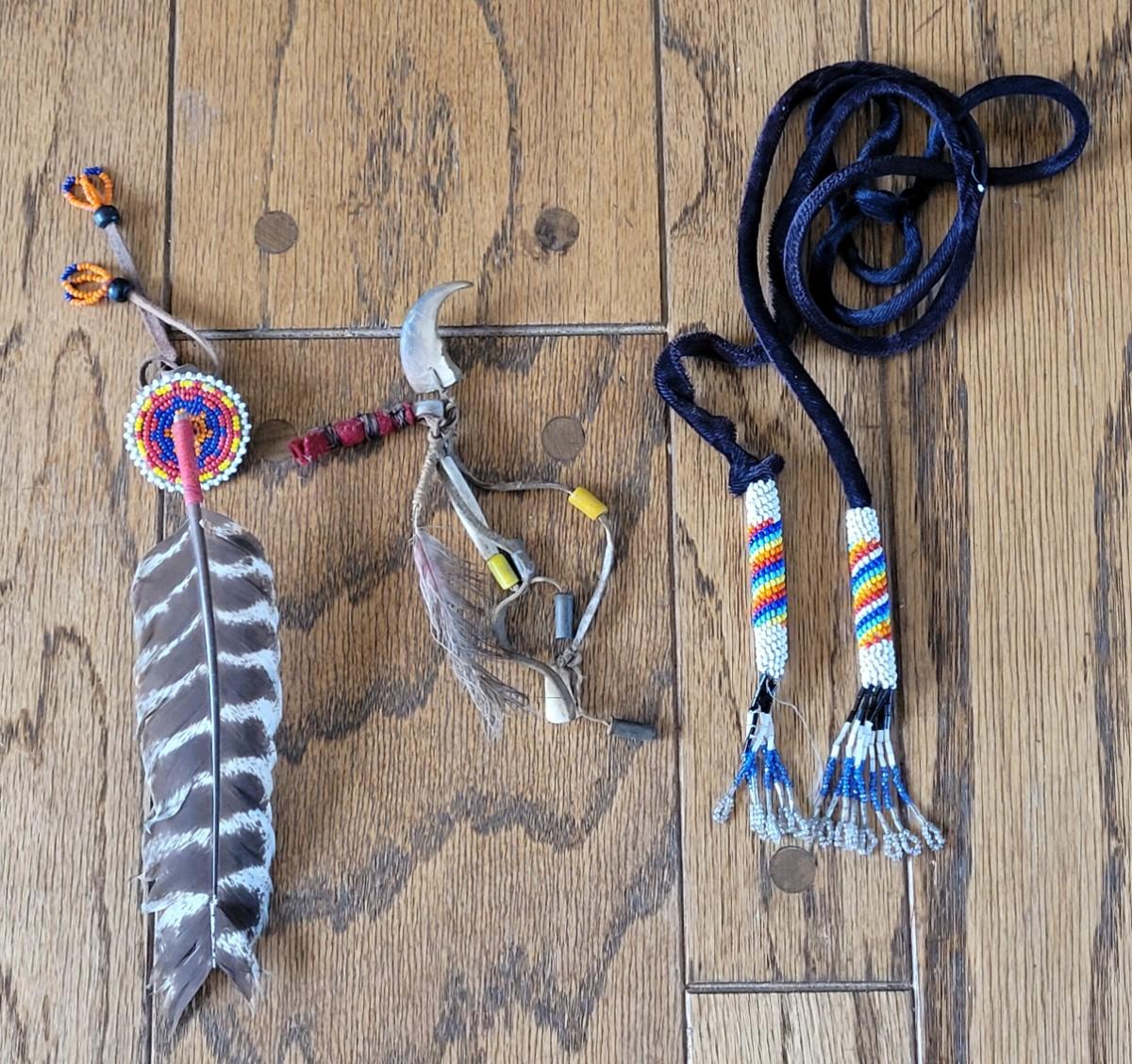 Lot 208: Vintage Native American Beaded & Feather Adornments
