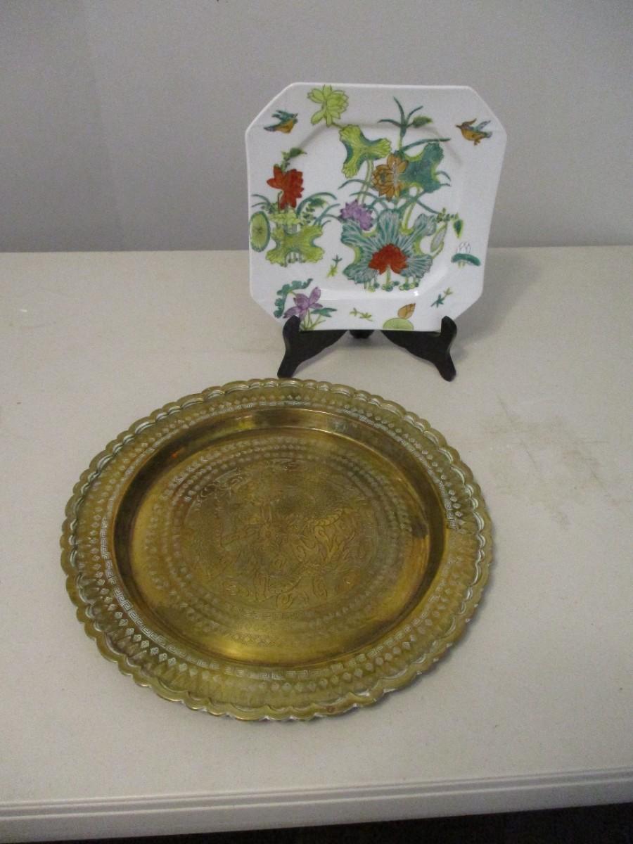 Lot 208 - ACF Japanese Porcelain Plate & Etched Brass Plate