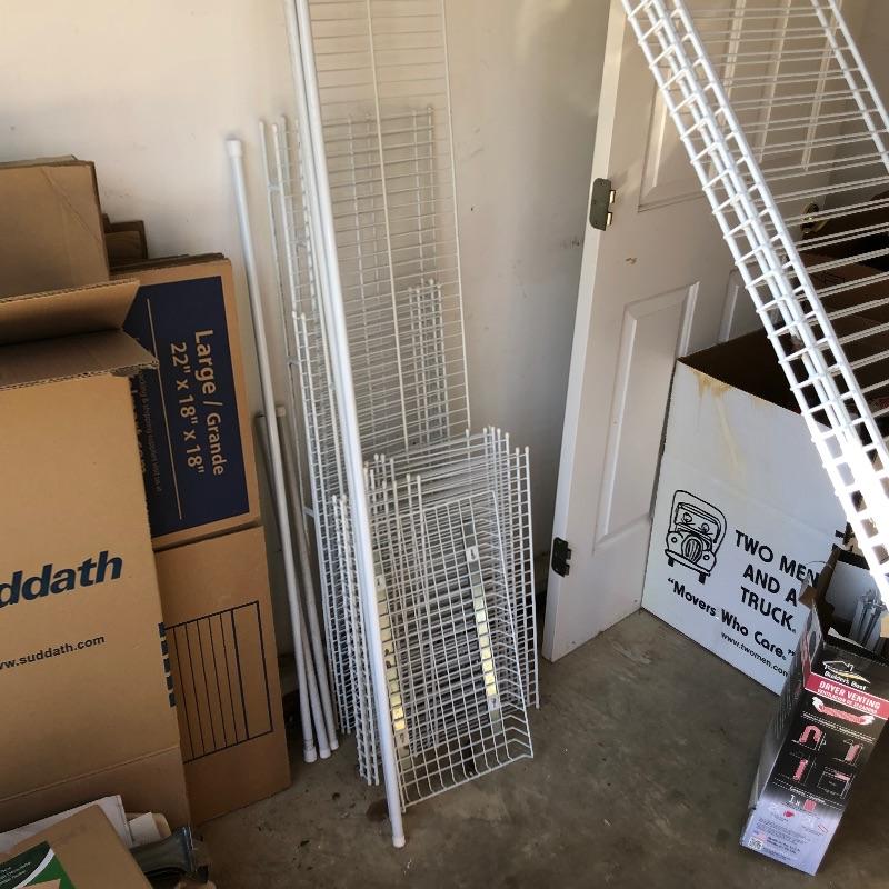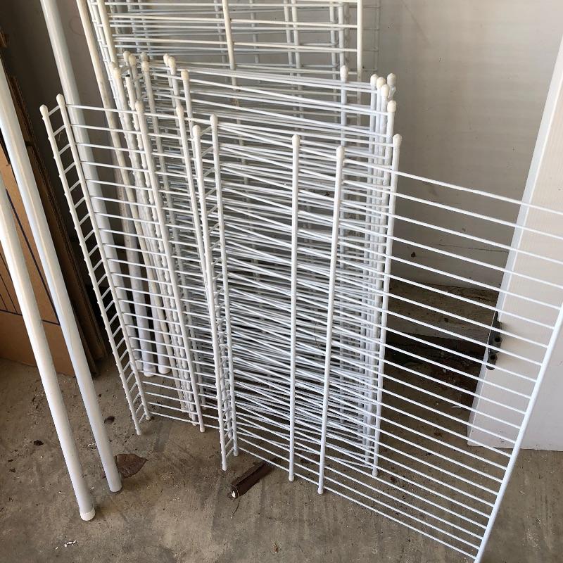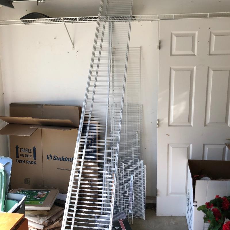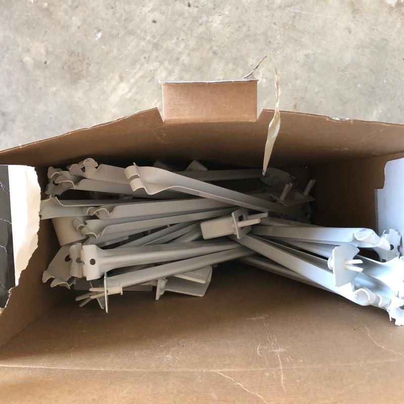 Add some extra storage space with this assortment of shelves and brackets. There are two very long shelves that would be ideal for a garage measuring 25” x 125”. An additional 11 shelves in an assortment of smaller sizes. Approximately 20 plus brackets come with this lot, see images.
