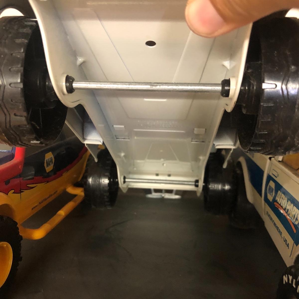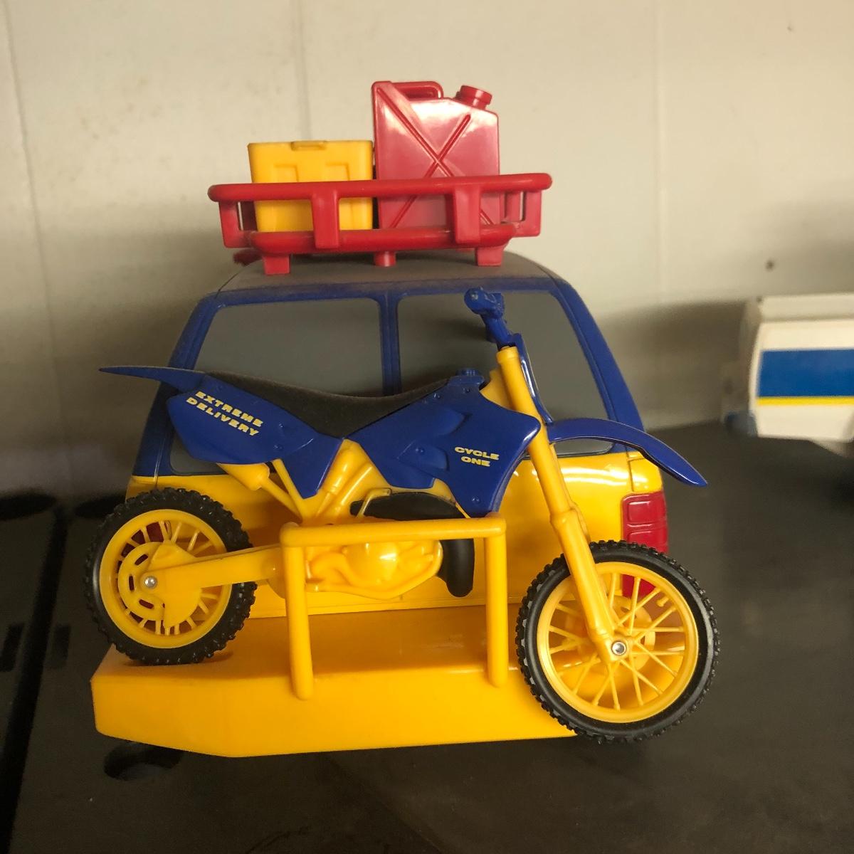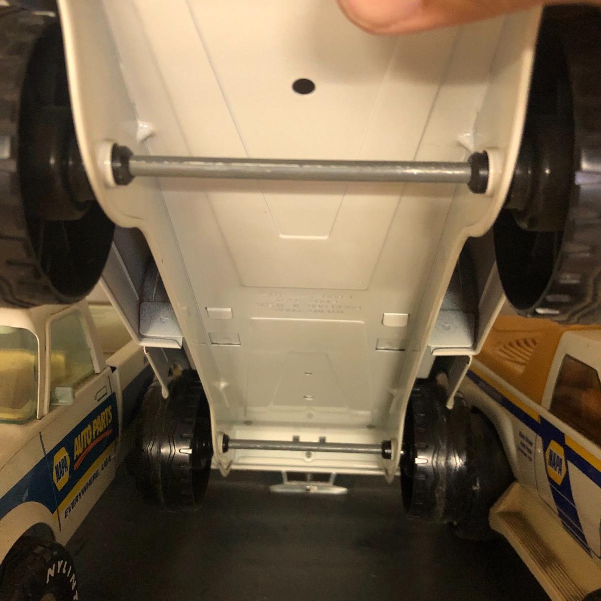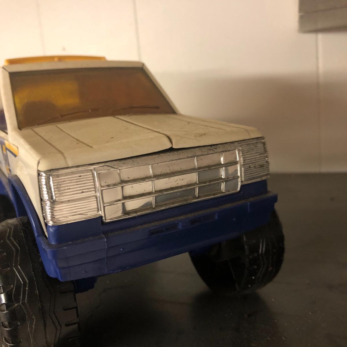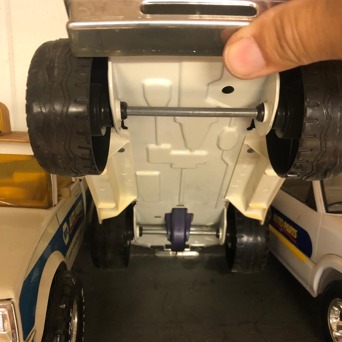 What a cool collection! This lot includes eight trucks and one boat. Of the eight trucks, five are pick-up trucks and three are a SUV style. One SUV does not have the bike on the back of the vehicle. Four of the trucks are made of metal (note the bottom of trucks.) The Nylint truck, two NAPA SUVs and boat take batteries. One metal pick up has a small crack in the window. Some dust and sun bleaching noted. Shipping Available.