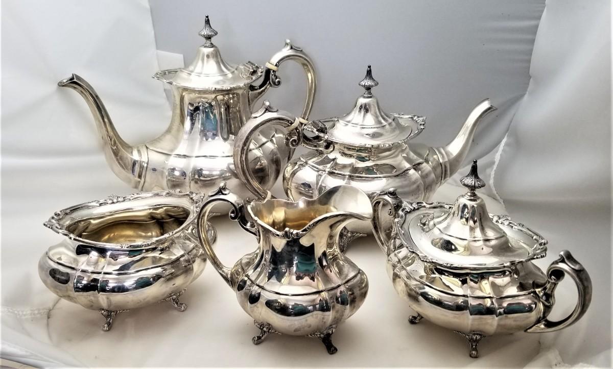 Lot #208  Fantastic Reed and Barton 5-piece Sterling Silver Tea Set "Hampton Court"
