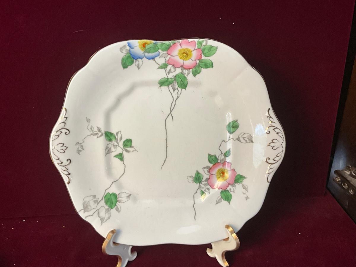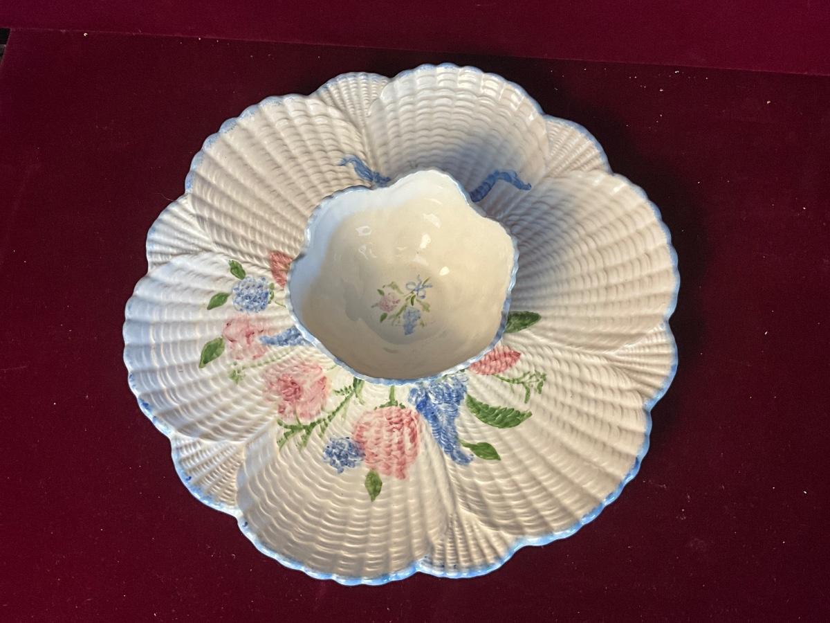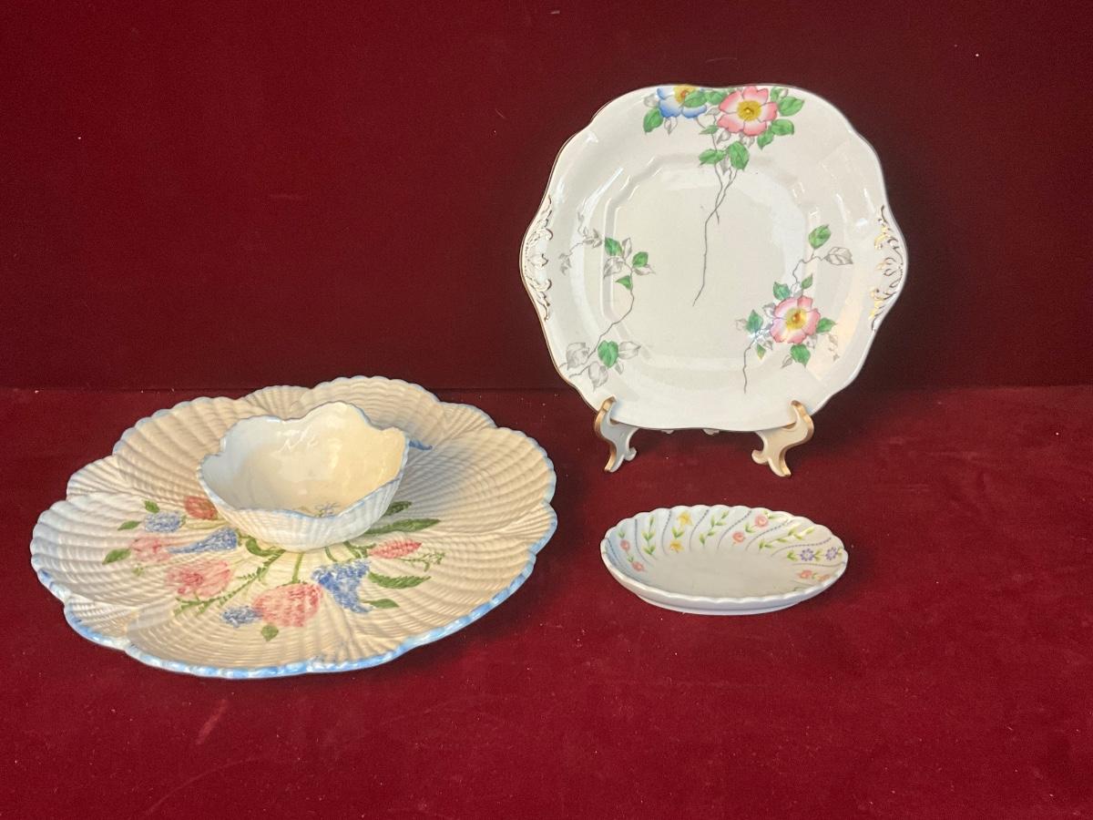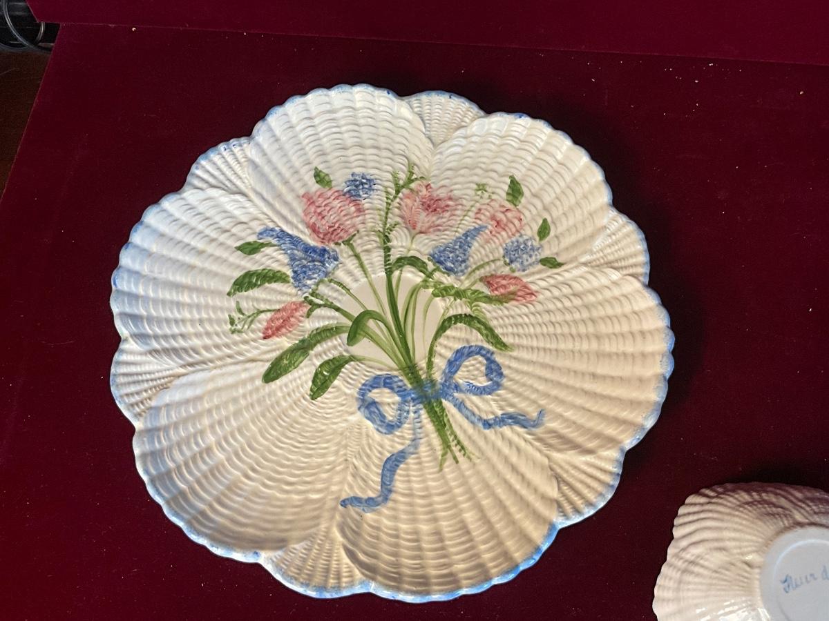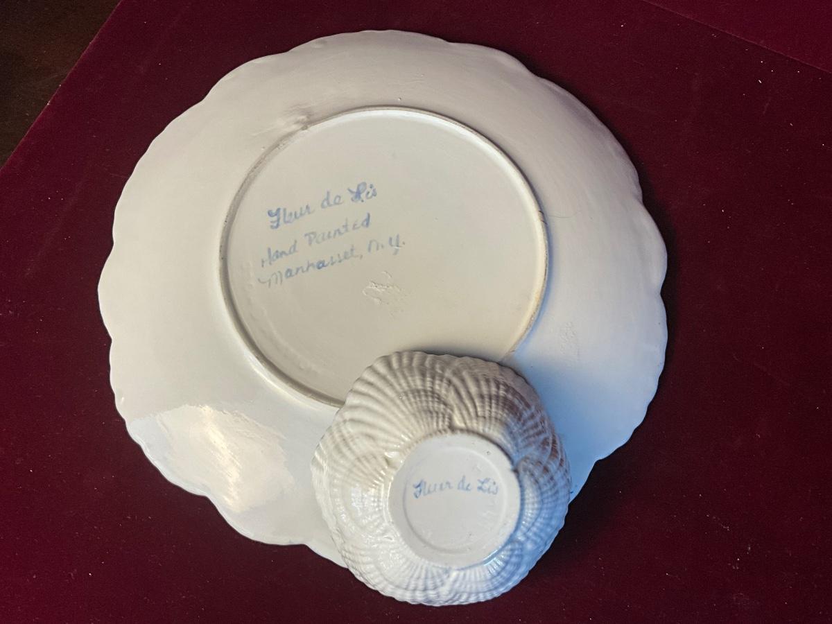 1 ) Scalloped Edge Hand Painted Plate with Matching Bowl
