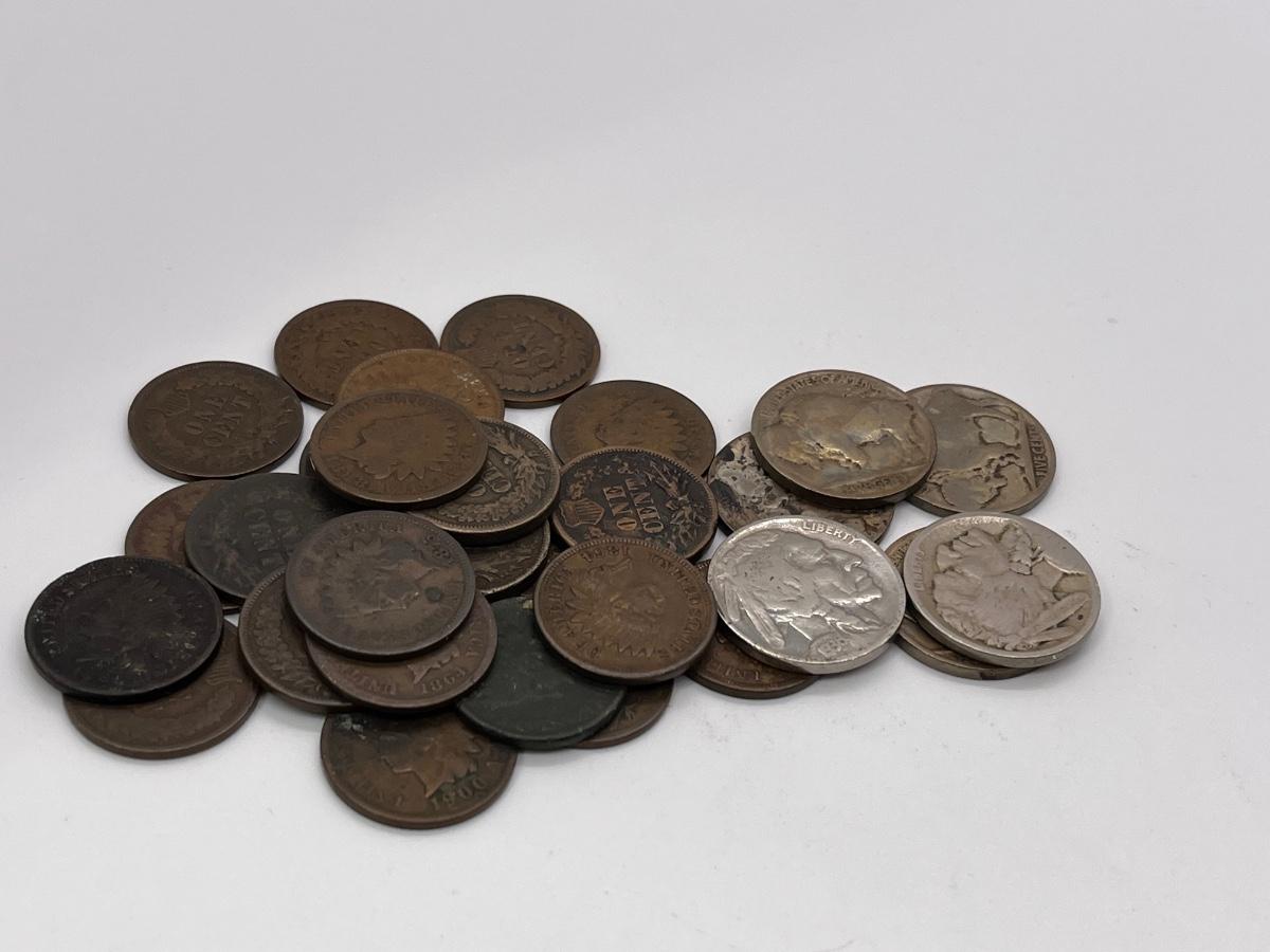Lot 208: Indian Head Pennies and Buffalo Nickels
