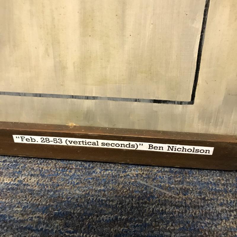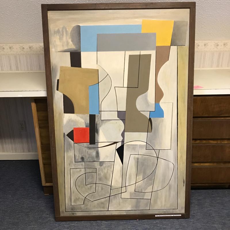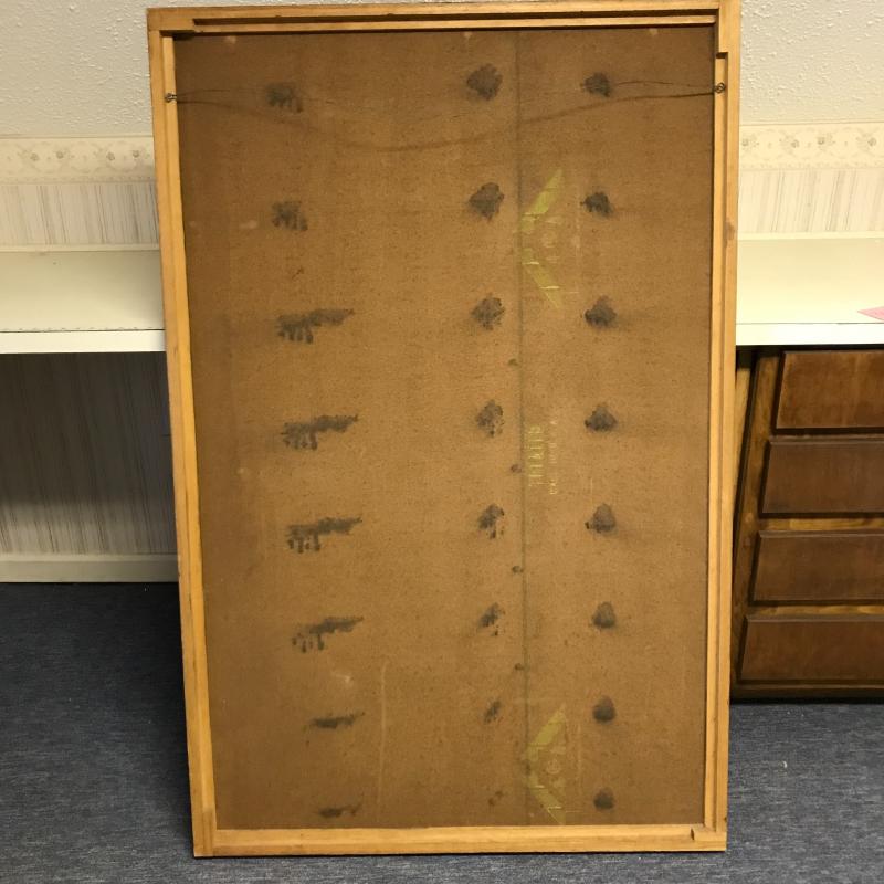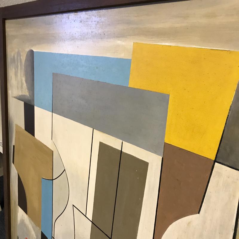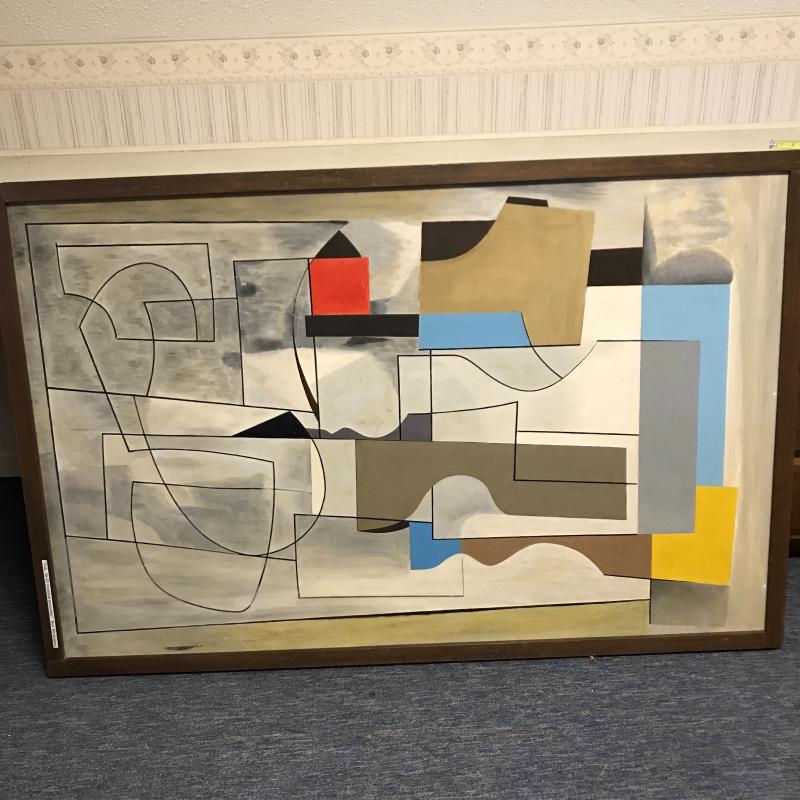 Large framed painting on plywood. Sticker on frame says it is by Ben Nicholson. Some dirt on frame and painting. Hang horizontal or vertical for different looks. Measures 59”l by 38.5”w. No shipping. Local pick up only in Flat Rock, NC.