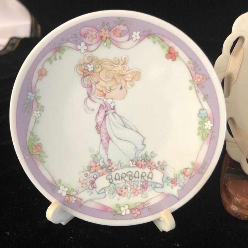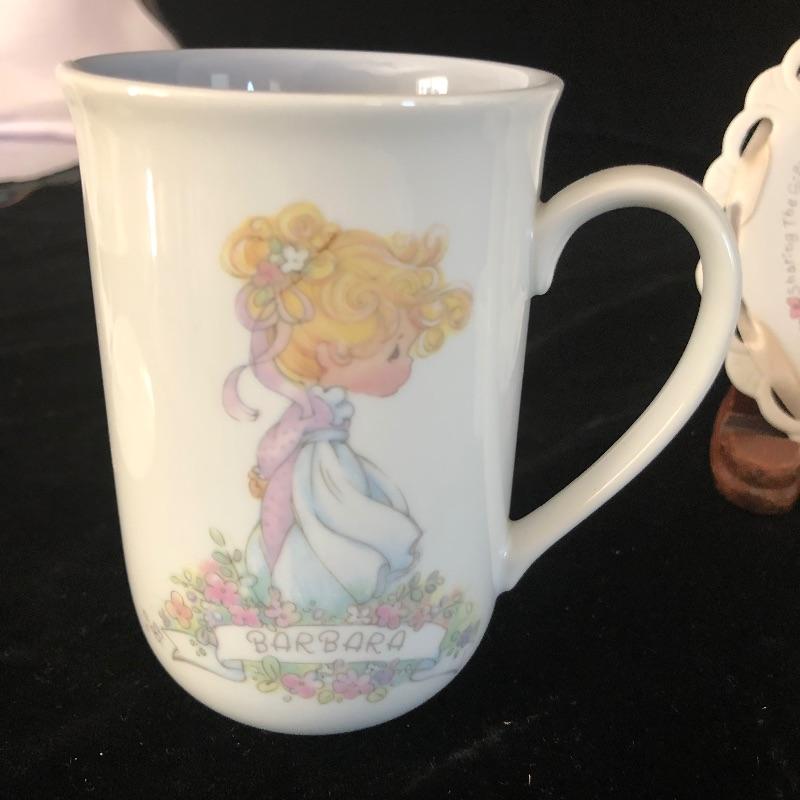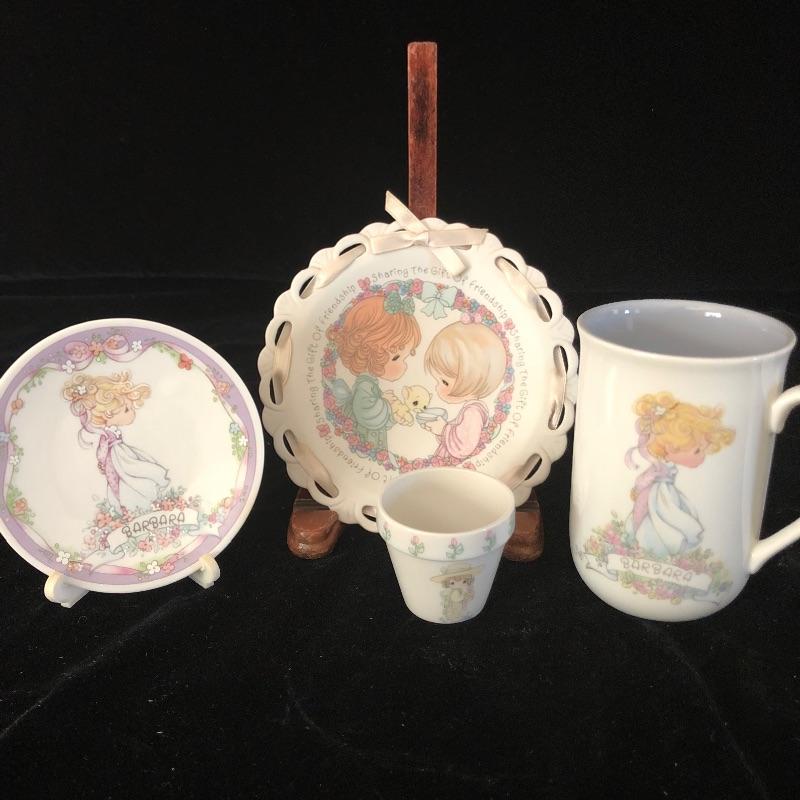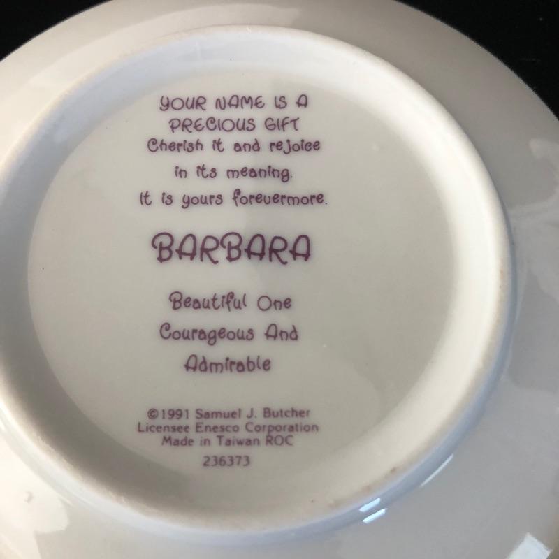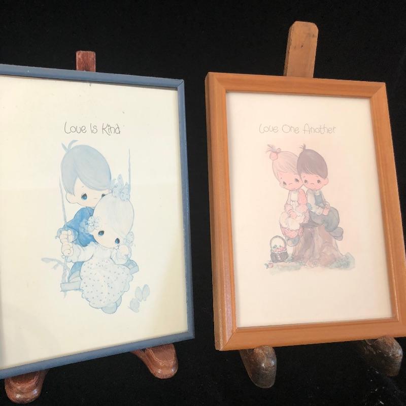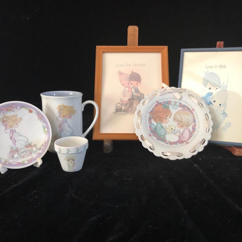 Perfect for a girls bedroom especially one named Barbara as the mug and dish are marked as such. Also included is a egg cup, collectible plate and two adorable framed prints reminding us that Love is Kind and to Love One Another. Frame measures 5.75” x 6.75”.