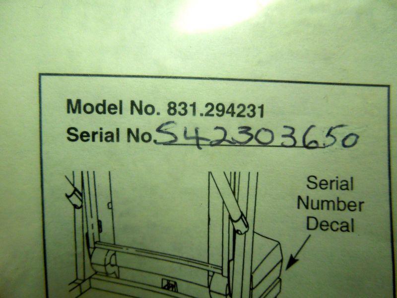 Tested and works. Model 831.294231 purchased in 2007. Has manual and original receipt. Includes set of 6 hand weights that are store under console. Also includes a metal adjustable arm wall bracket mount for TV set, computer or stereo