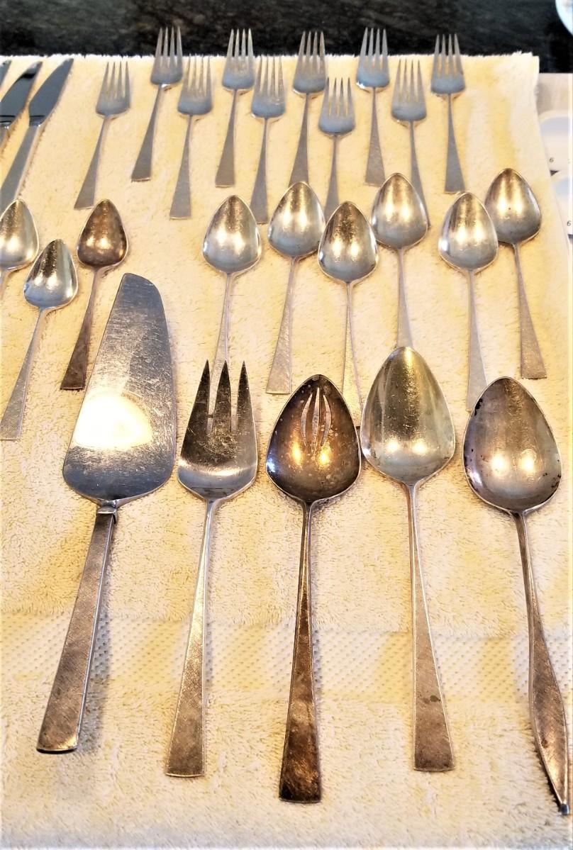 Lot #208 Set of Mid-Century Reed & Barton Sterling Flatware in the "Deminsion" pattern