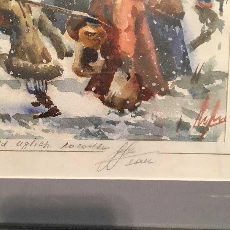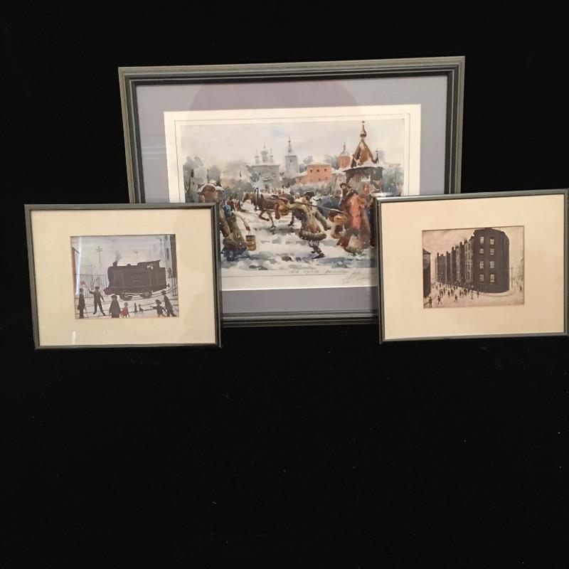 Wintery framed art includes pair of small framed artwork by L.S Lowry and a pencil and ink signed artwork. See images for all three of these lovely pieces of framed art.