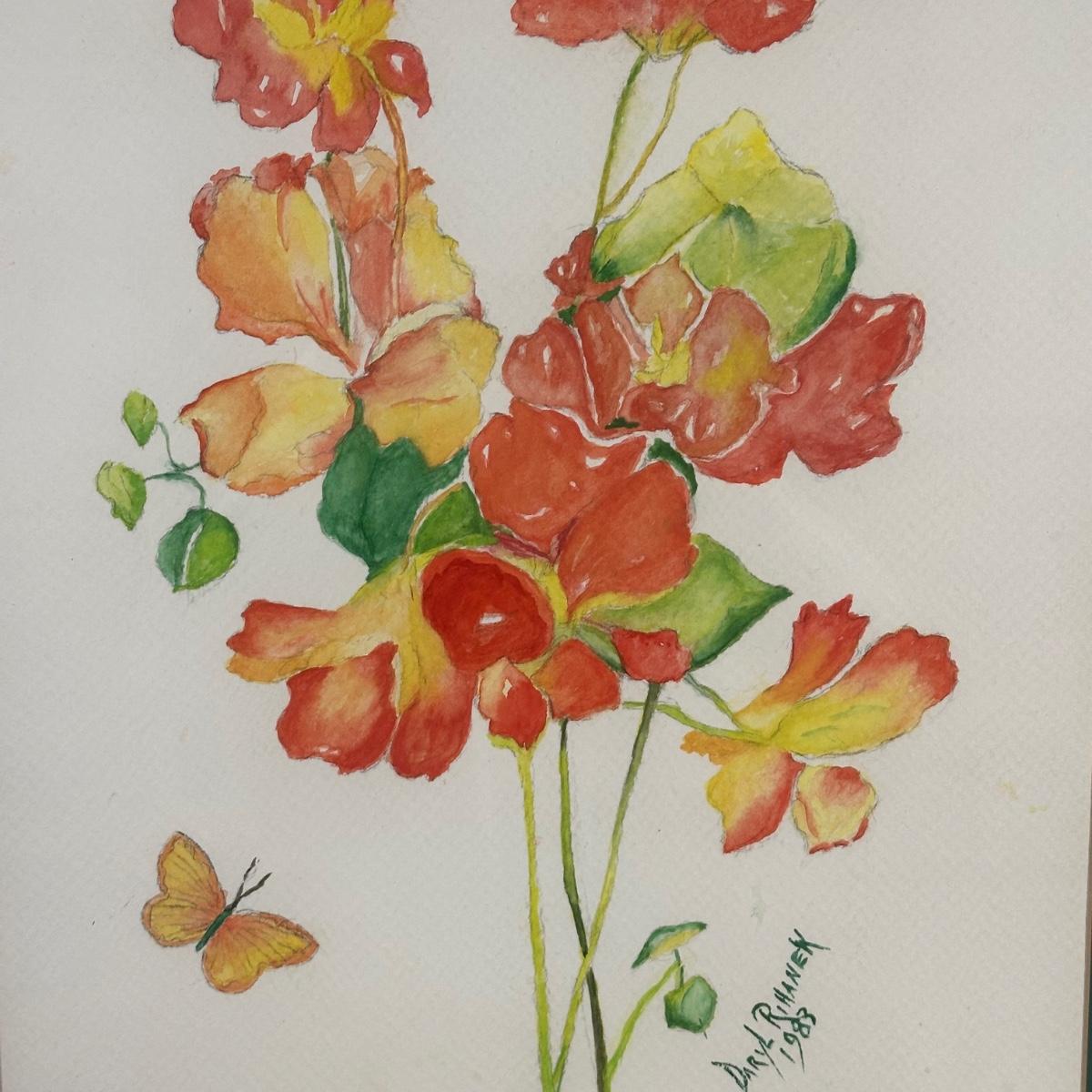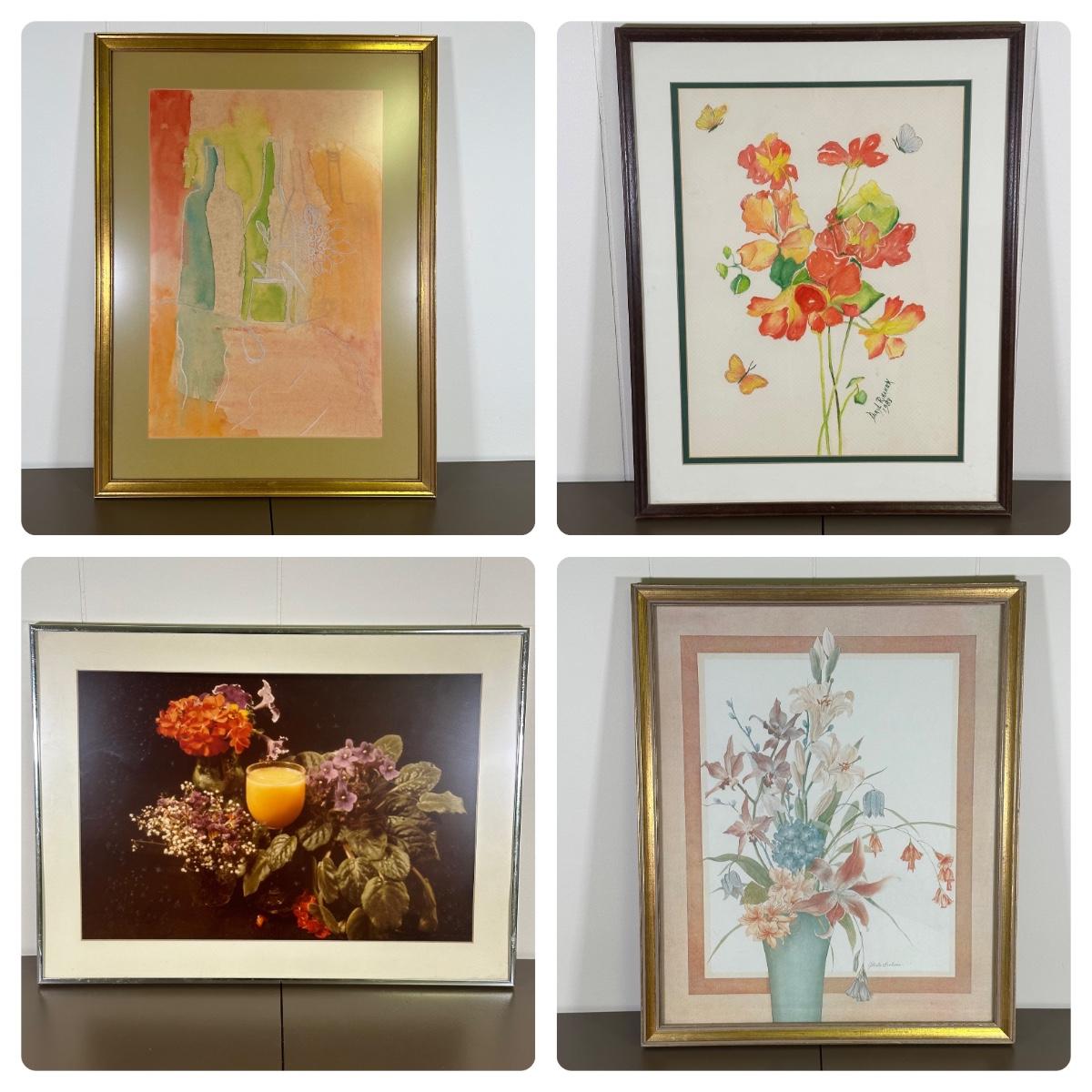 LOT 208B: Floral Artwork - Daryl Rihanek Signed Painting, Gloria Eriksen Framed Spring Arrangement Signed Print & More