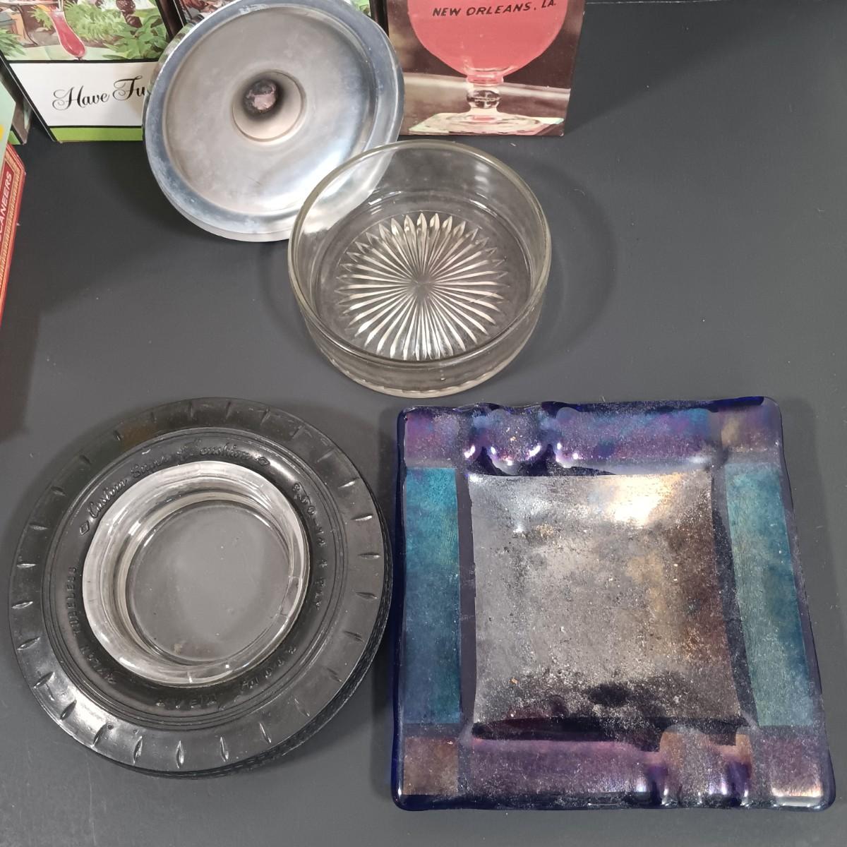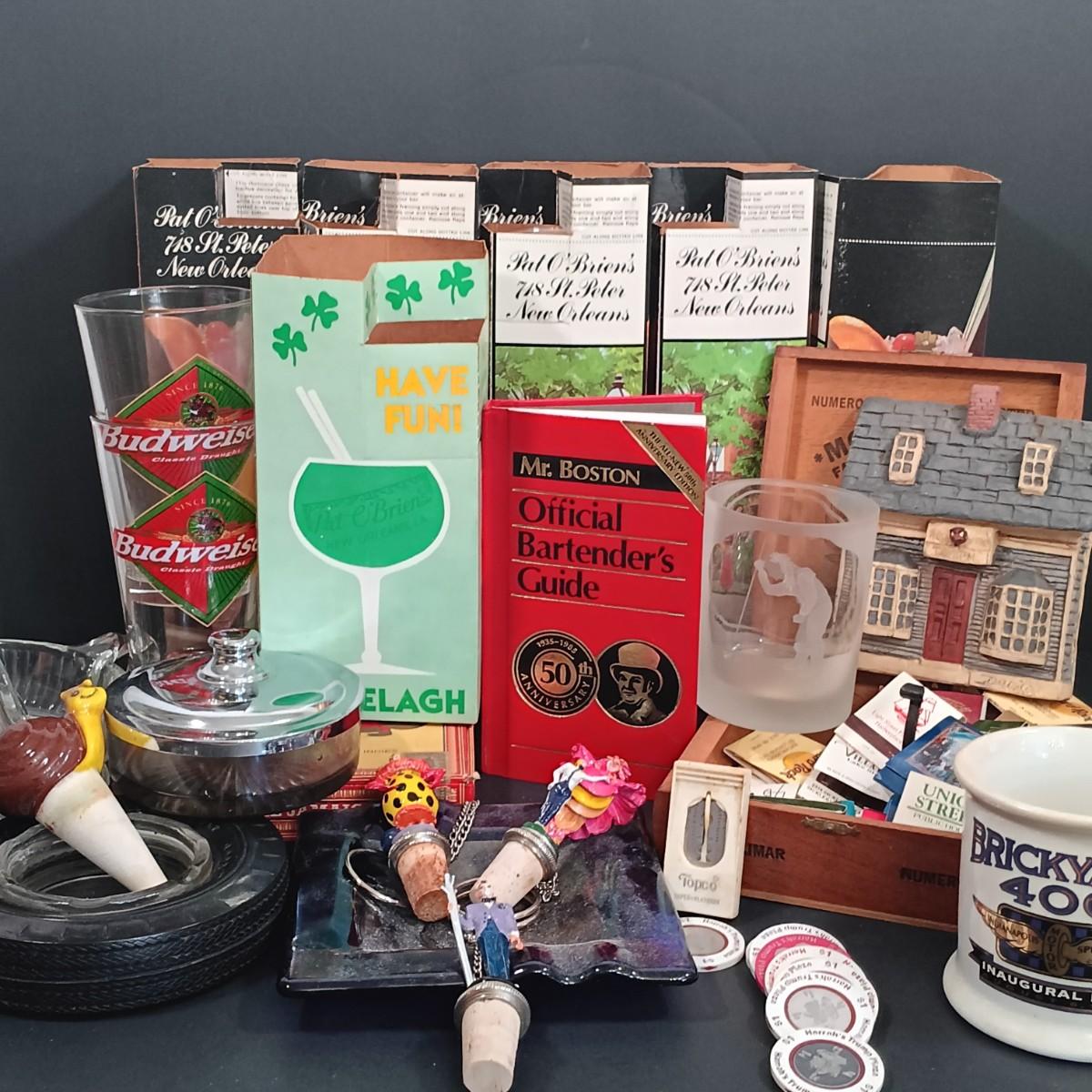 LOT 208K: Bar Lot- Sculpta Glass Set, Cirque du Soleil Bottle Stoppers, Vintage Ashtrays & More