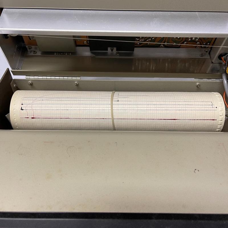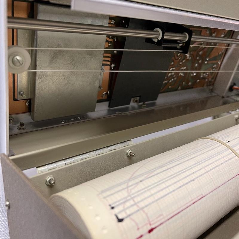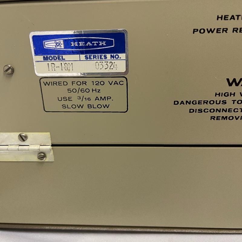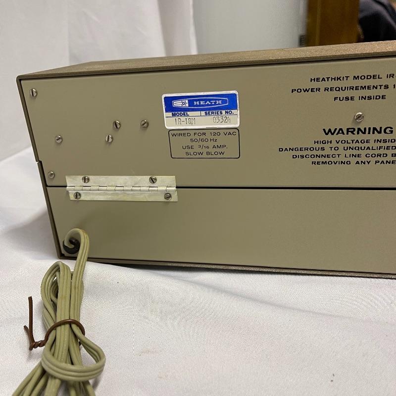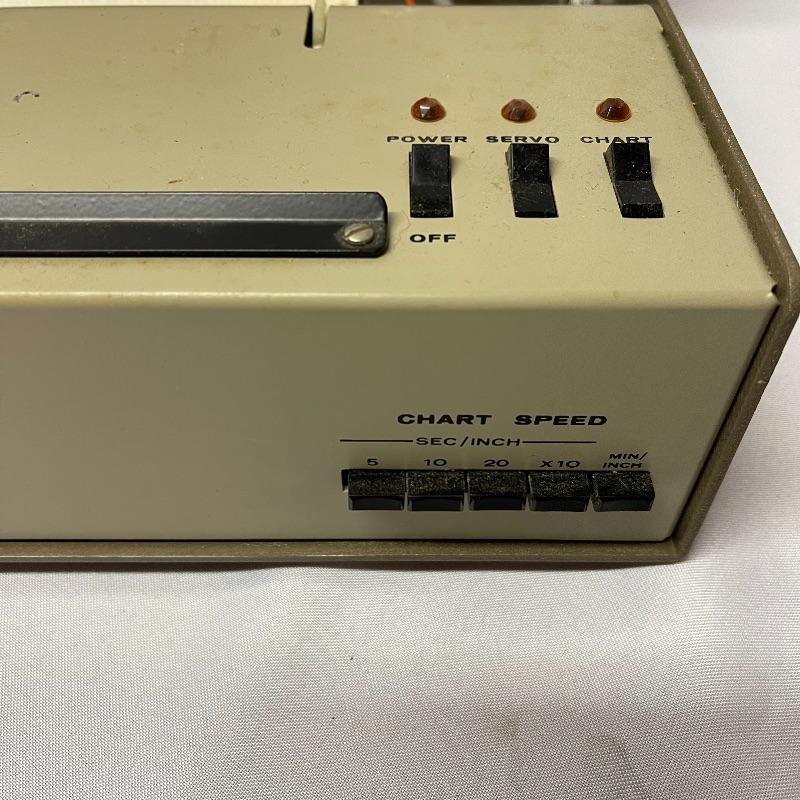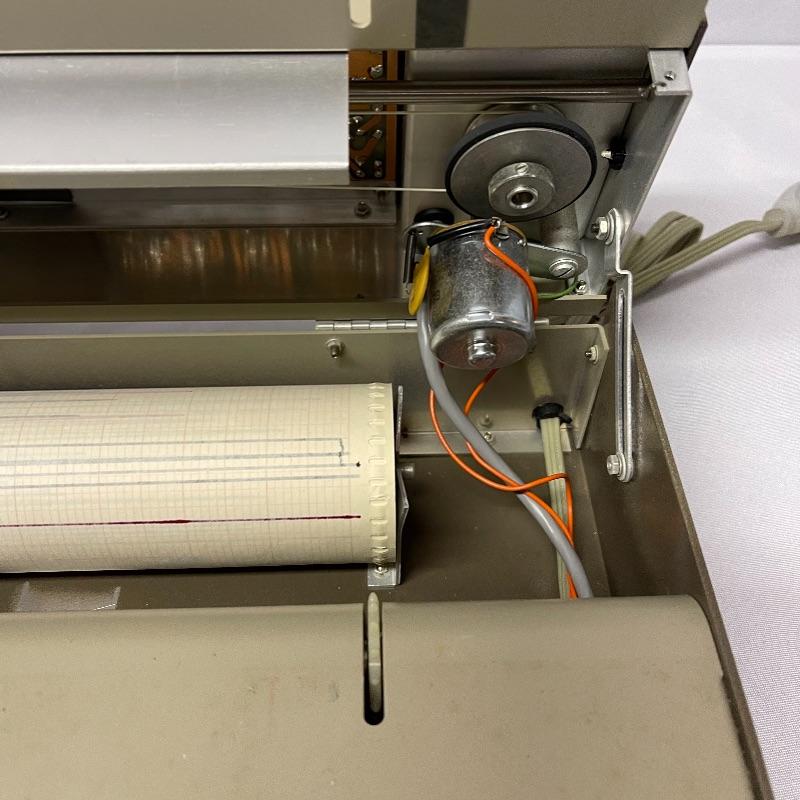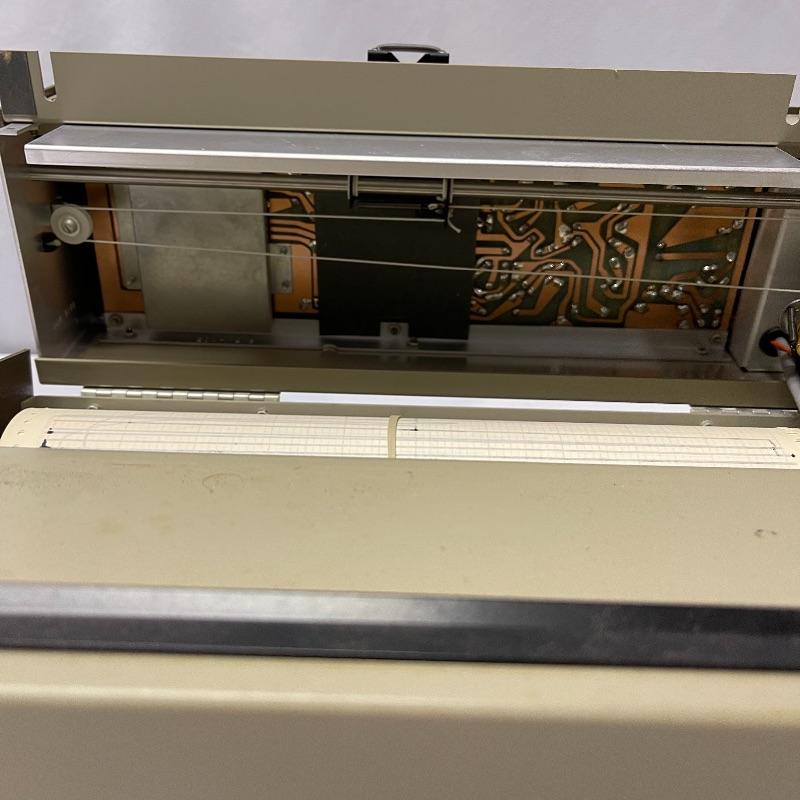 Heathkit Multi-Speed Servo Chart Recorder with a roll of paper inside. The model number is IR-18M. When plugged in, it powered on.