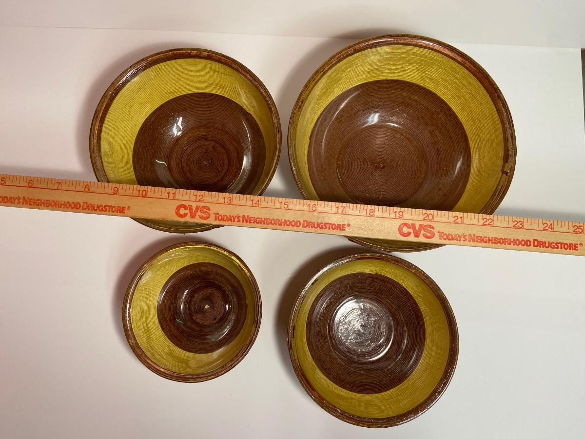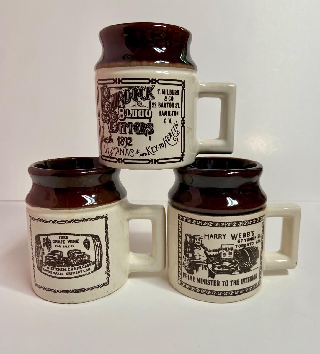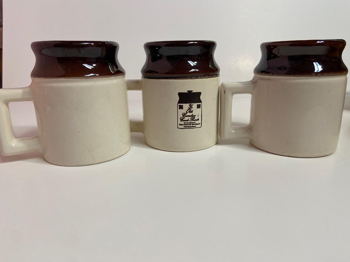 Lot 209; MCM Snack bowls & Abenakis Pottery  Advertising Crock Mugs