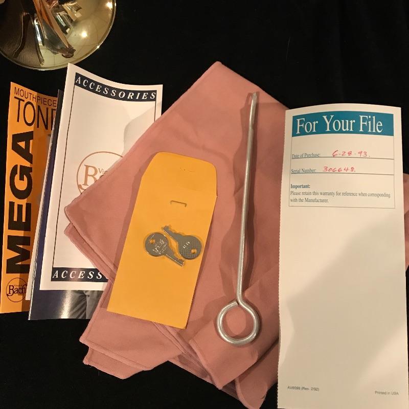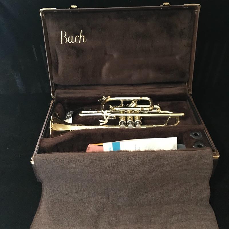 This auction just keeps getting better! Vincent Bach Stradivarius Cornet stamped “Model 31” and M 306648 on its second valve. This Cornet is a thing of beauty! Valves move freely. Lot includes The Selmer Company Bach hard cover case with keys that measures approximately 19.5” x 6.25” x 11”. Sound quality has not been tested. Mouthpiece not included. See photos. Shipping available.