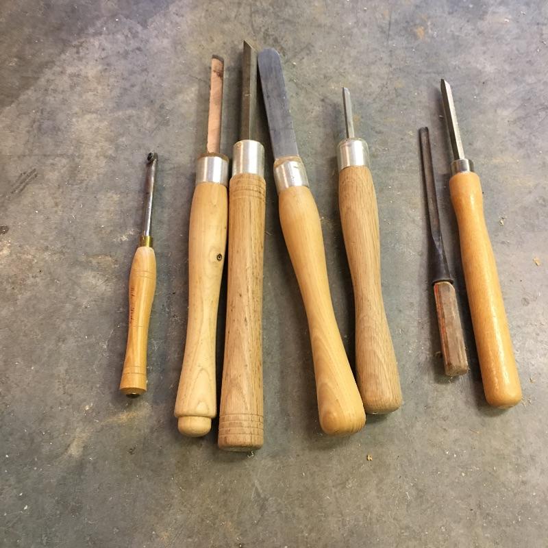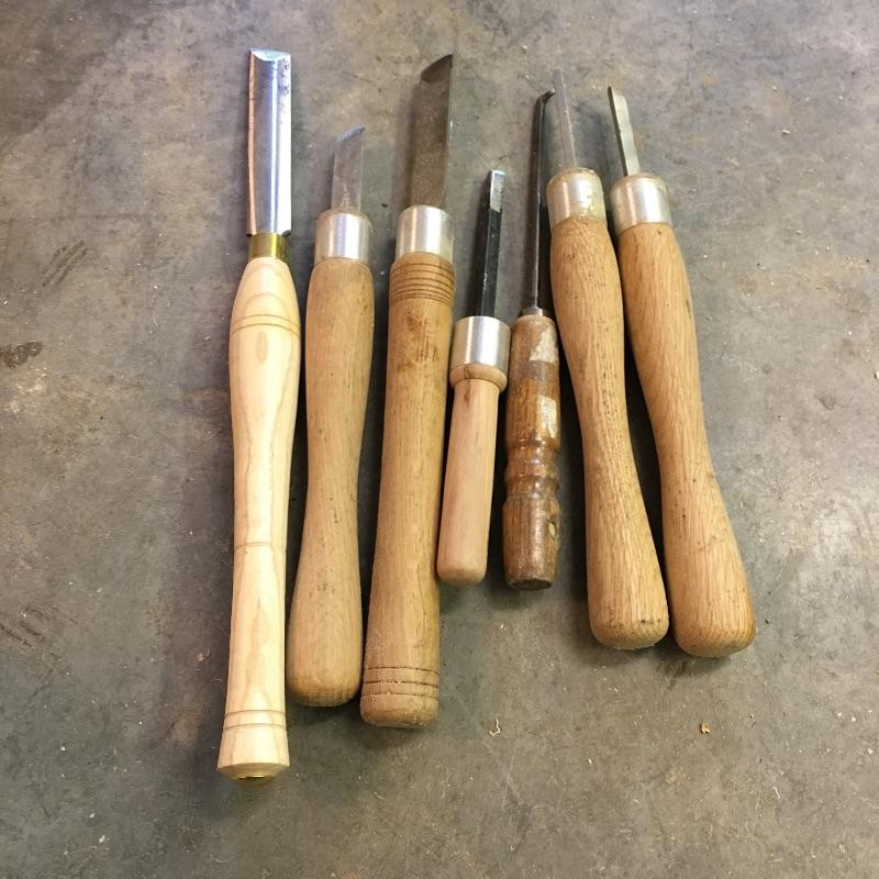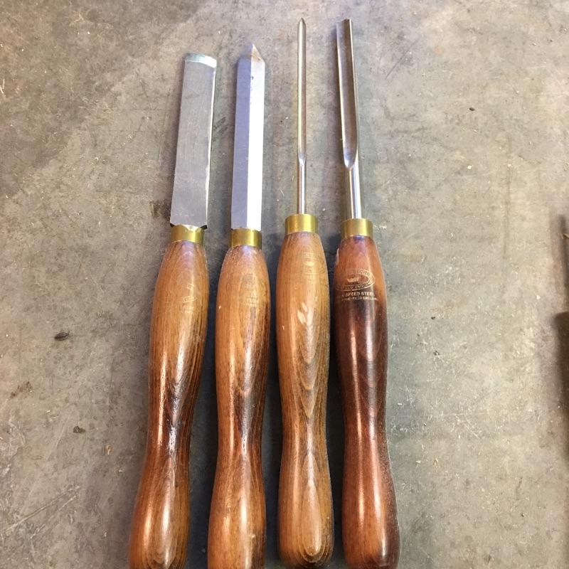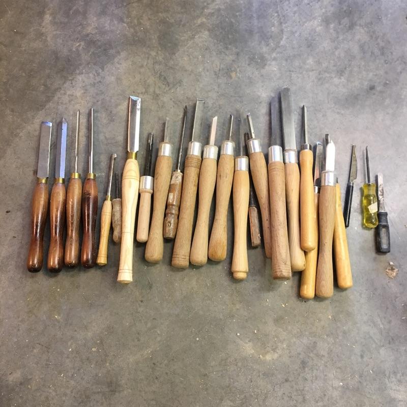 Large assortment of lathe tools. Four are made by Crown Tools the rest are unmarked. Largest tool measures 17.5” long.