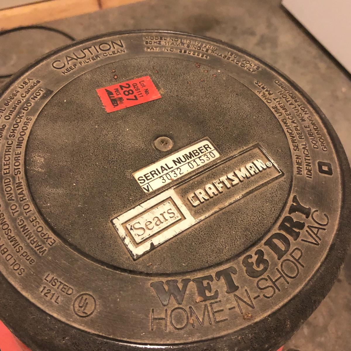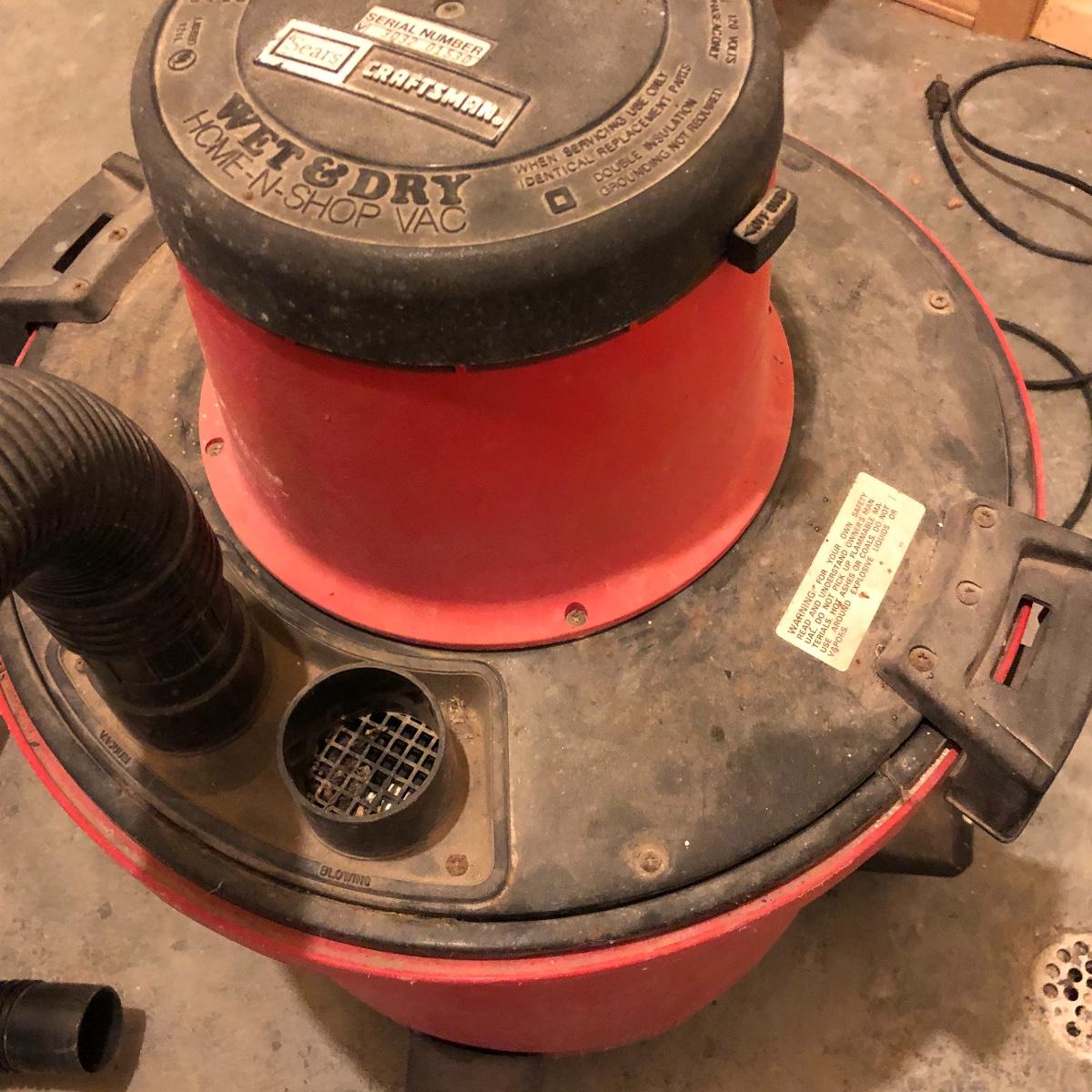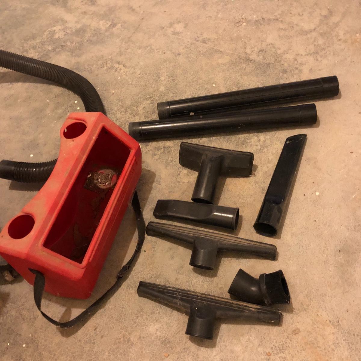 Clean up any mess with this powerful wet and dry shop vac. The serial number is 3032 01530. It has an attachment caddy and comes with a variety of attachments. It powered on when plugged in. Looks as if it could use a new filter. Local pick up only.