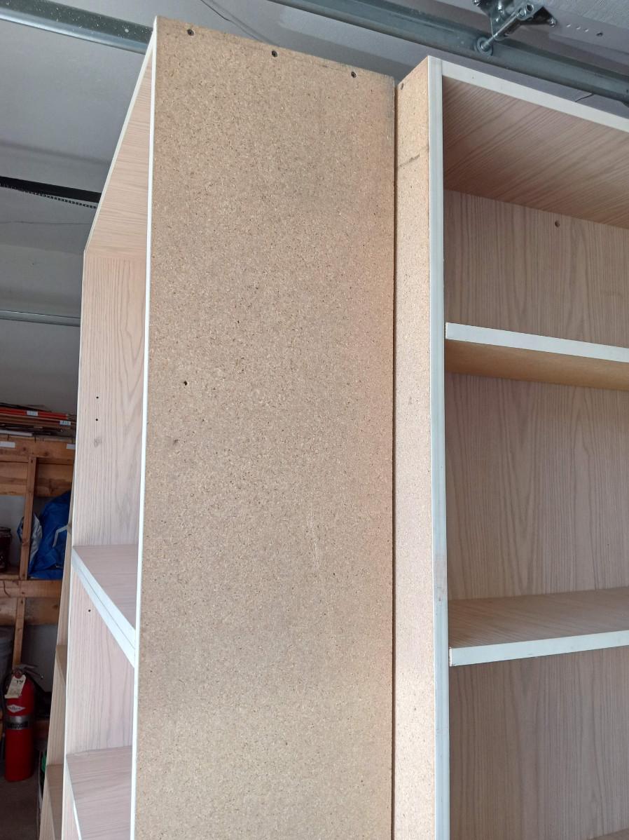 BOOKCASE MEASURES 36" X 12" X 78" THE SHELVES ARE ADJUSTABLE, THE SIDES ARE NOT FINISHED, IT IS IN VERY GOOD SHAPE