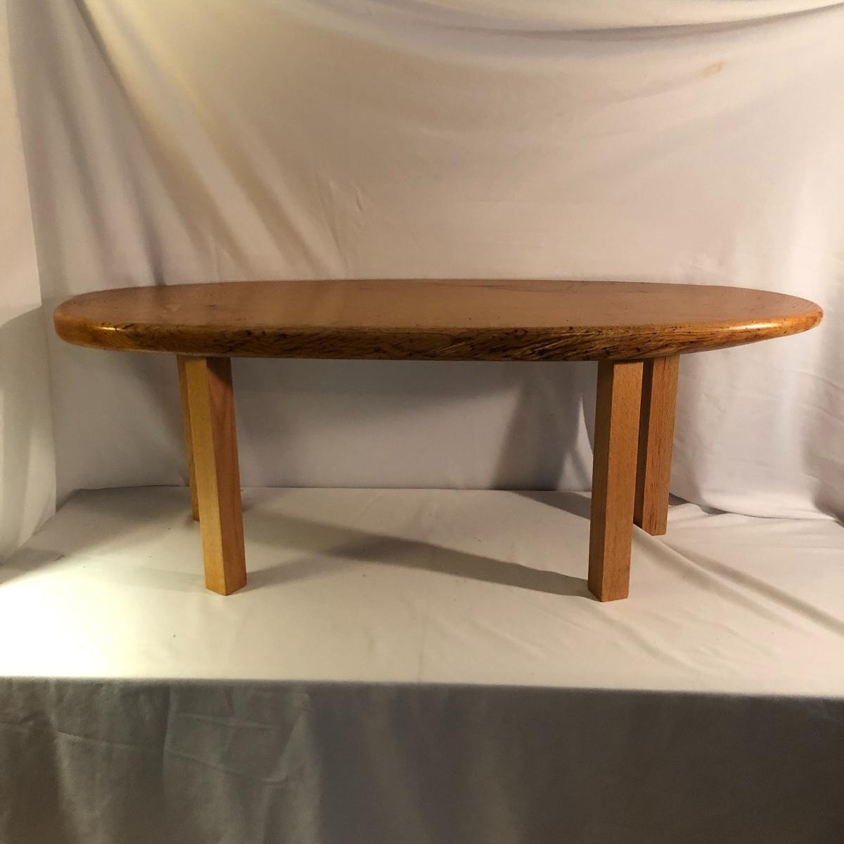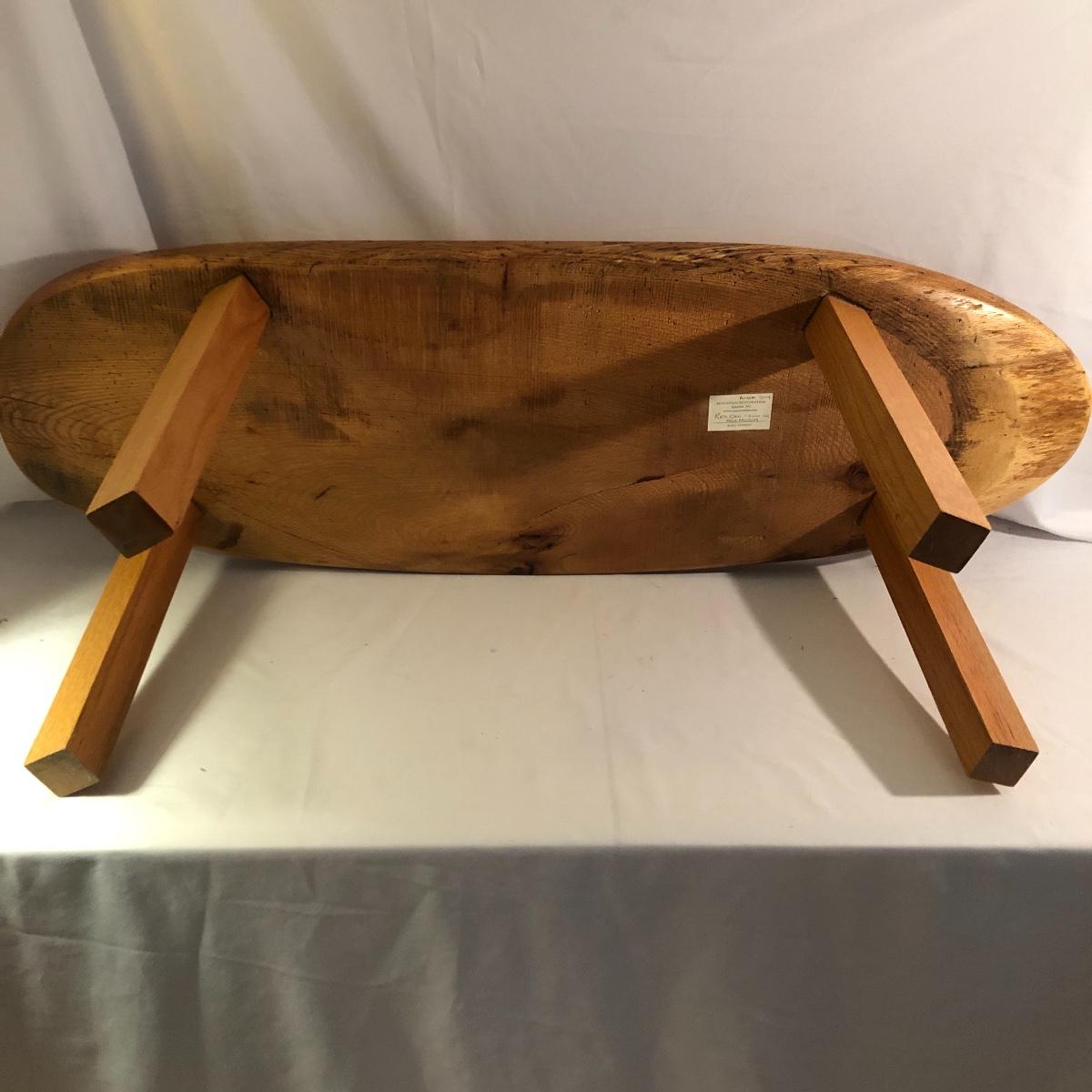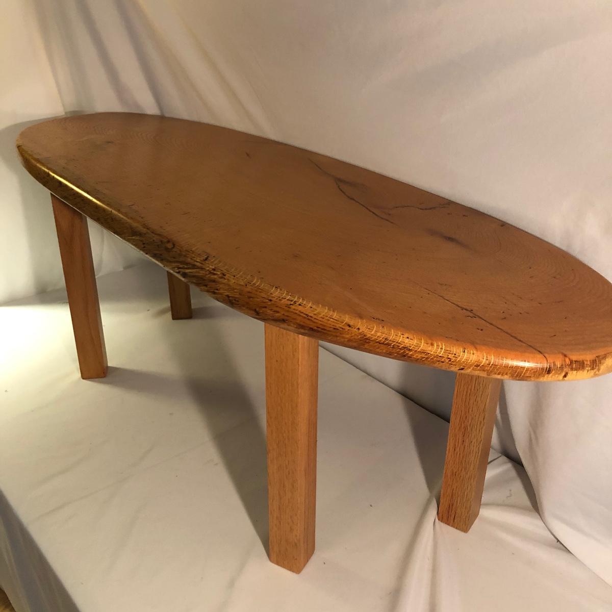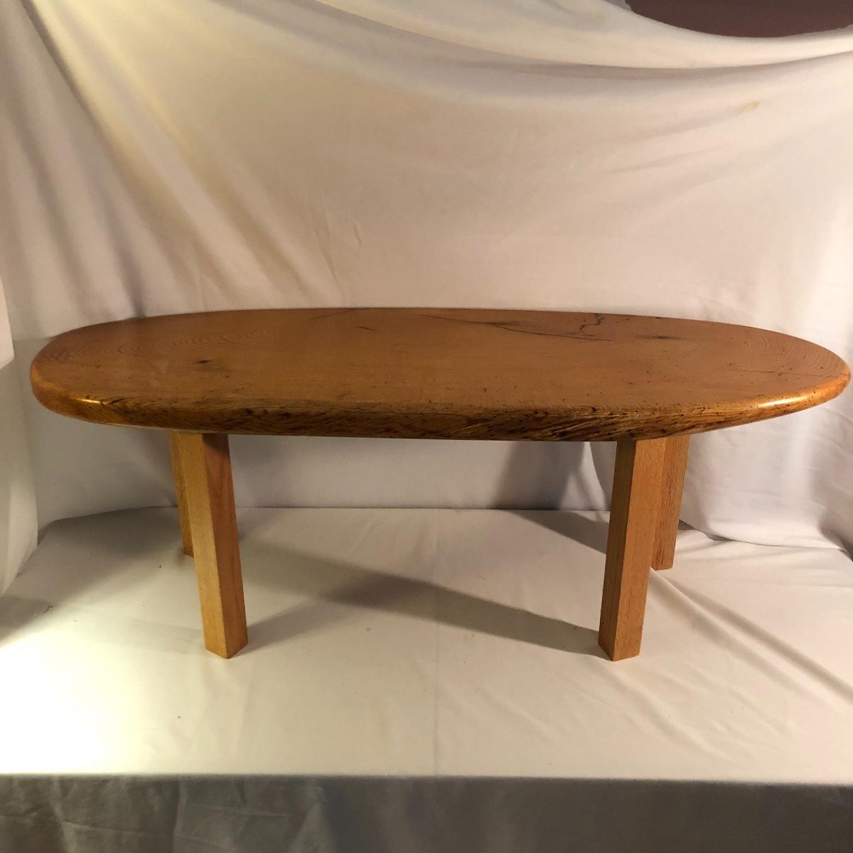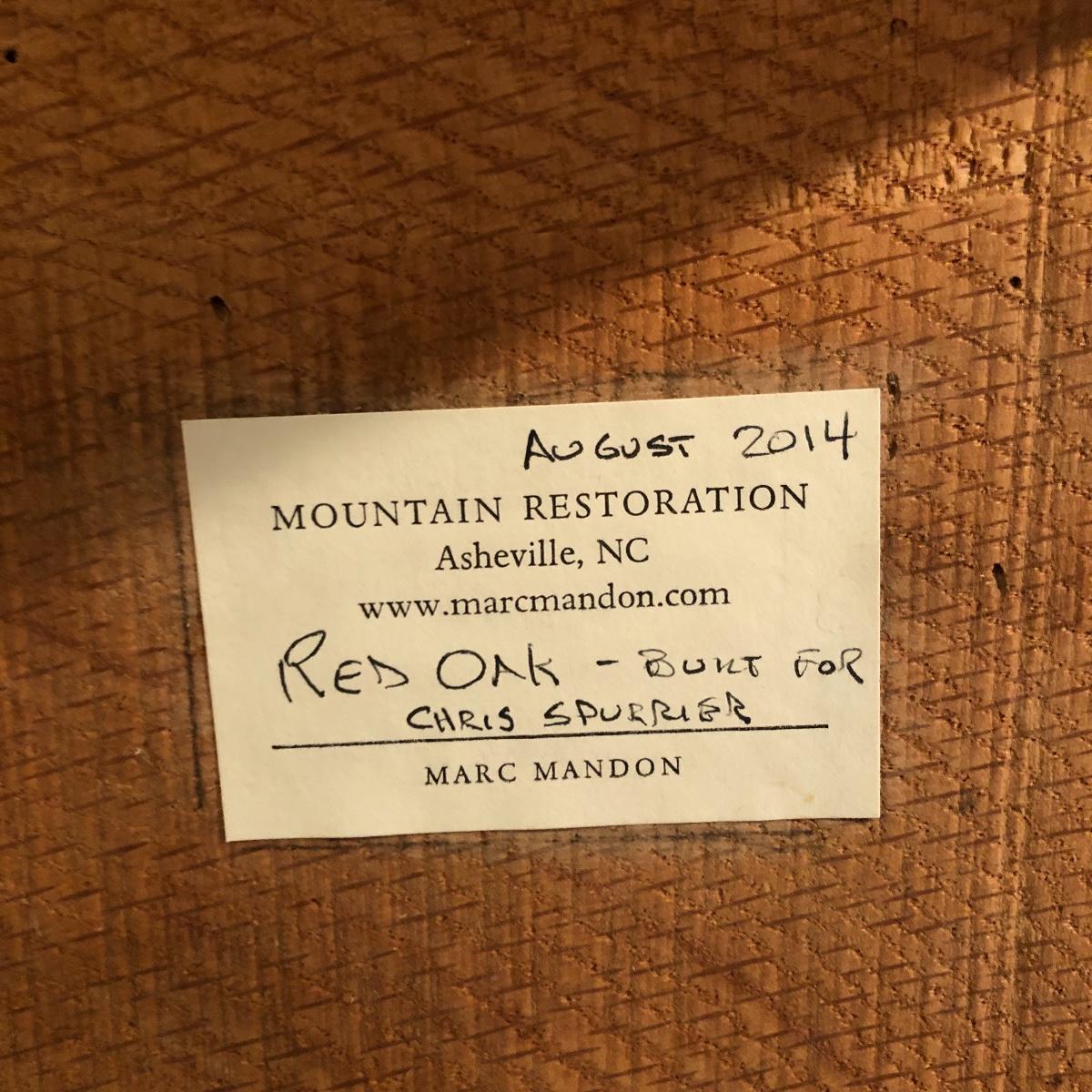 This table is solidly built and much heavier than it looks. Table has a tag that says it came from Mountain Restoration by Marc Mandon who is a local fine furniture maker. Built to last a lifetime. Table measures 16” x 48” x 18”.