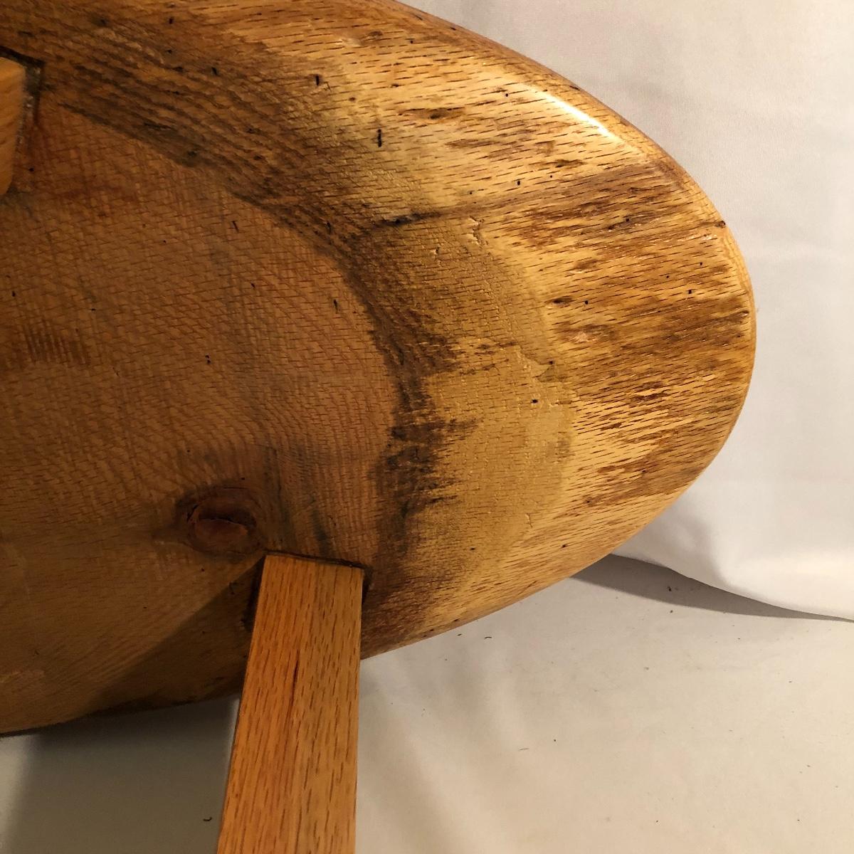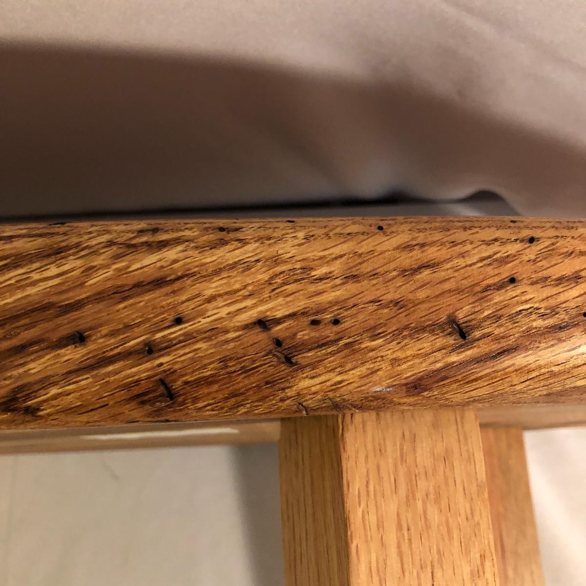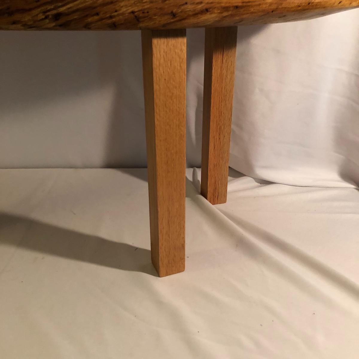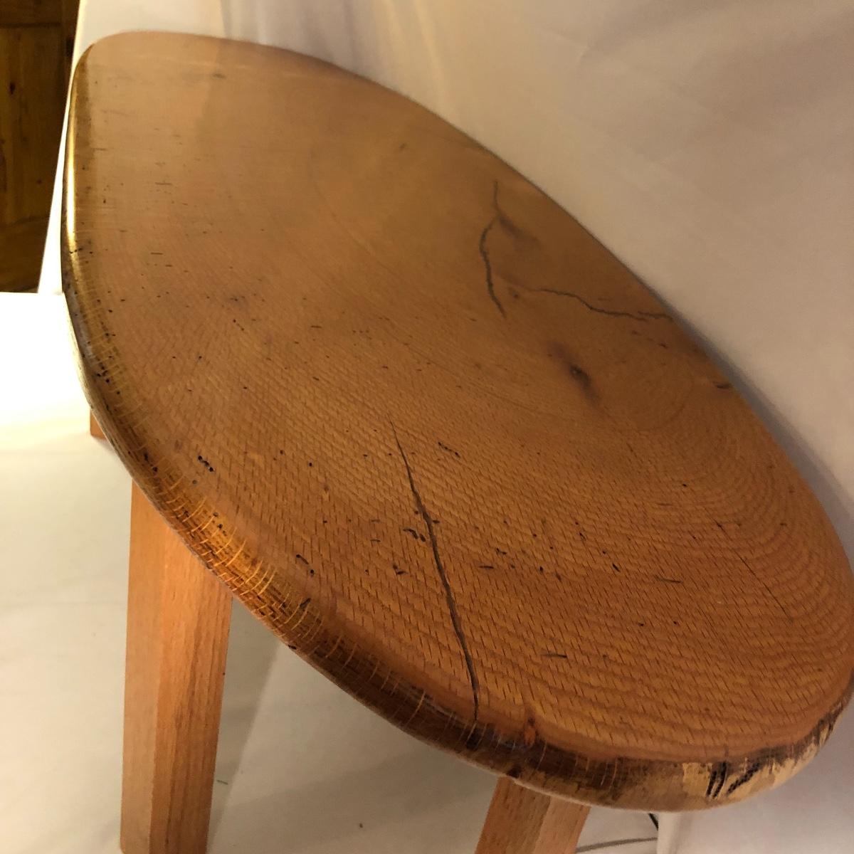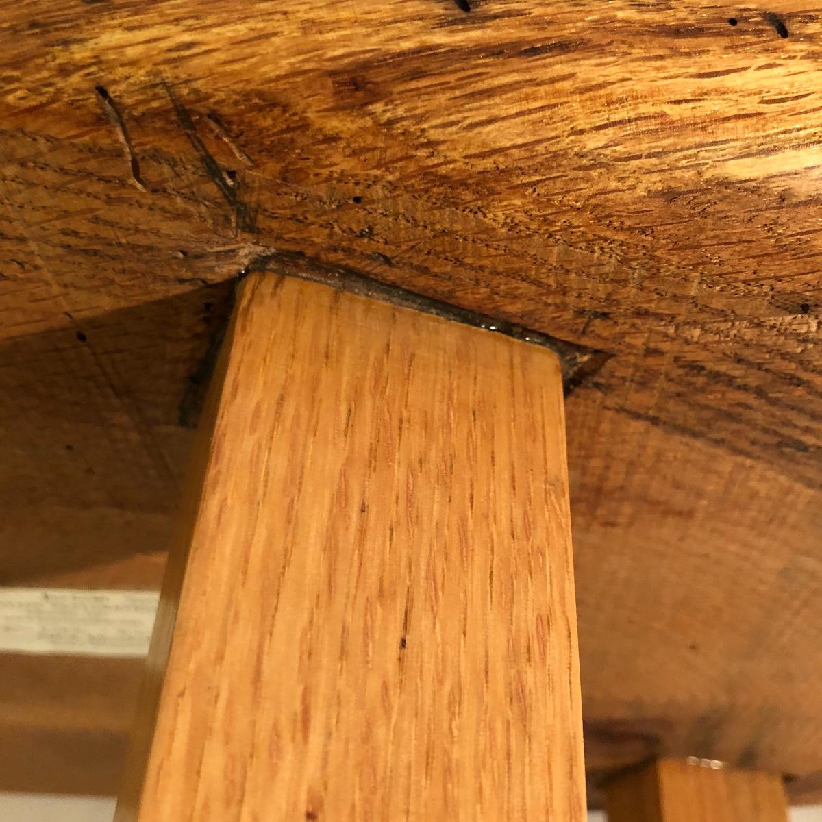 This table is solidly built and much heavier than it looks. Table has a tag that says it came from Mountain Restoration by Marc Mandon who is a local fine furniture maker. Built to last a lifetime. Table measures 16” x 48” x 18”.