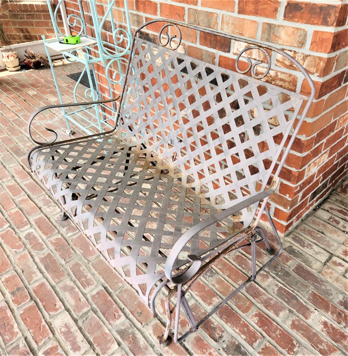 Vintage metal 2 person glider for patio - works fine, smooth action. 41.5" across, 30" deep, 37" tall.