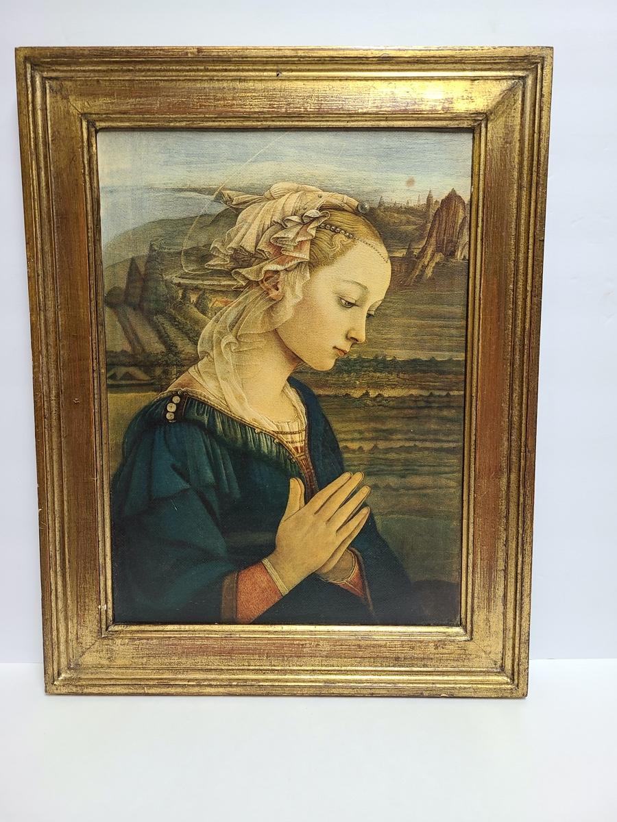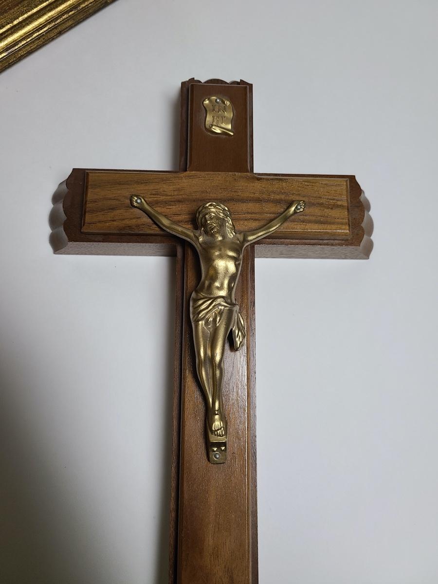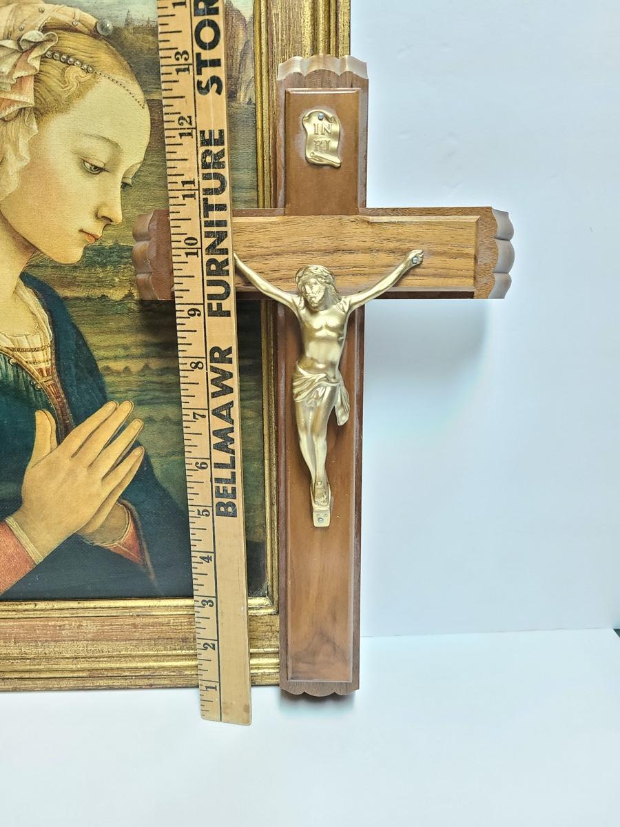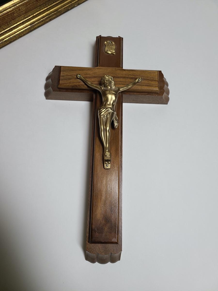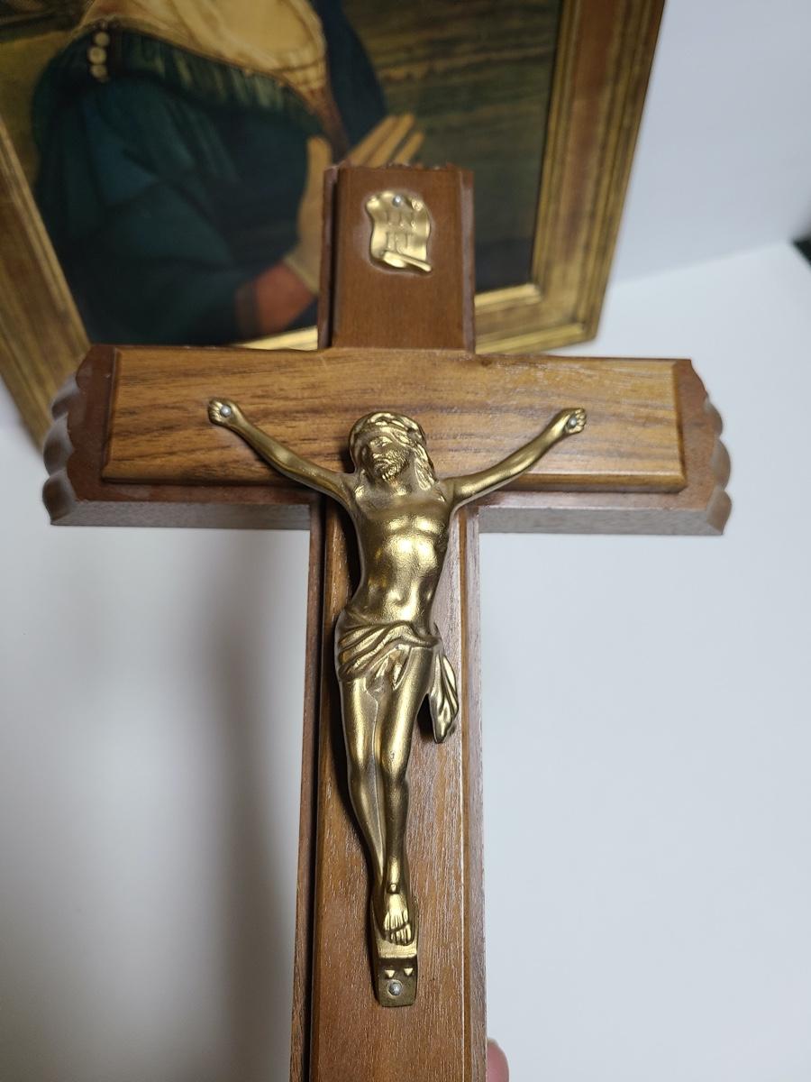 This artwork is gorgeous but is vintage, and not an antique. It looks to be a print of a painting on board in gold gild frame. From a distance looks like hand-done painting. Two crucifixes including a wall mount with holy water and candles, other is smaller in size. Please see all pictures. The pictures show condition, measurements if taken, and what is included in the lot. Due to the large amount that we photograph and the time frame, we are not always able to take measurements. All items unless noted, are pre-owned and have been used. If you purchased furniture, you must bring help. We do not allow one person to carry large furniture out on their own. Bring help, tools and a truck for the safety of our client’s homes, and your personal safety. Company policy. Thank you