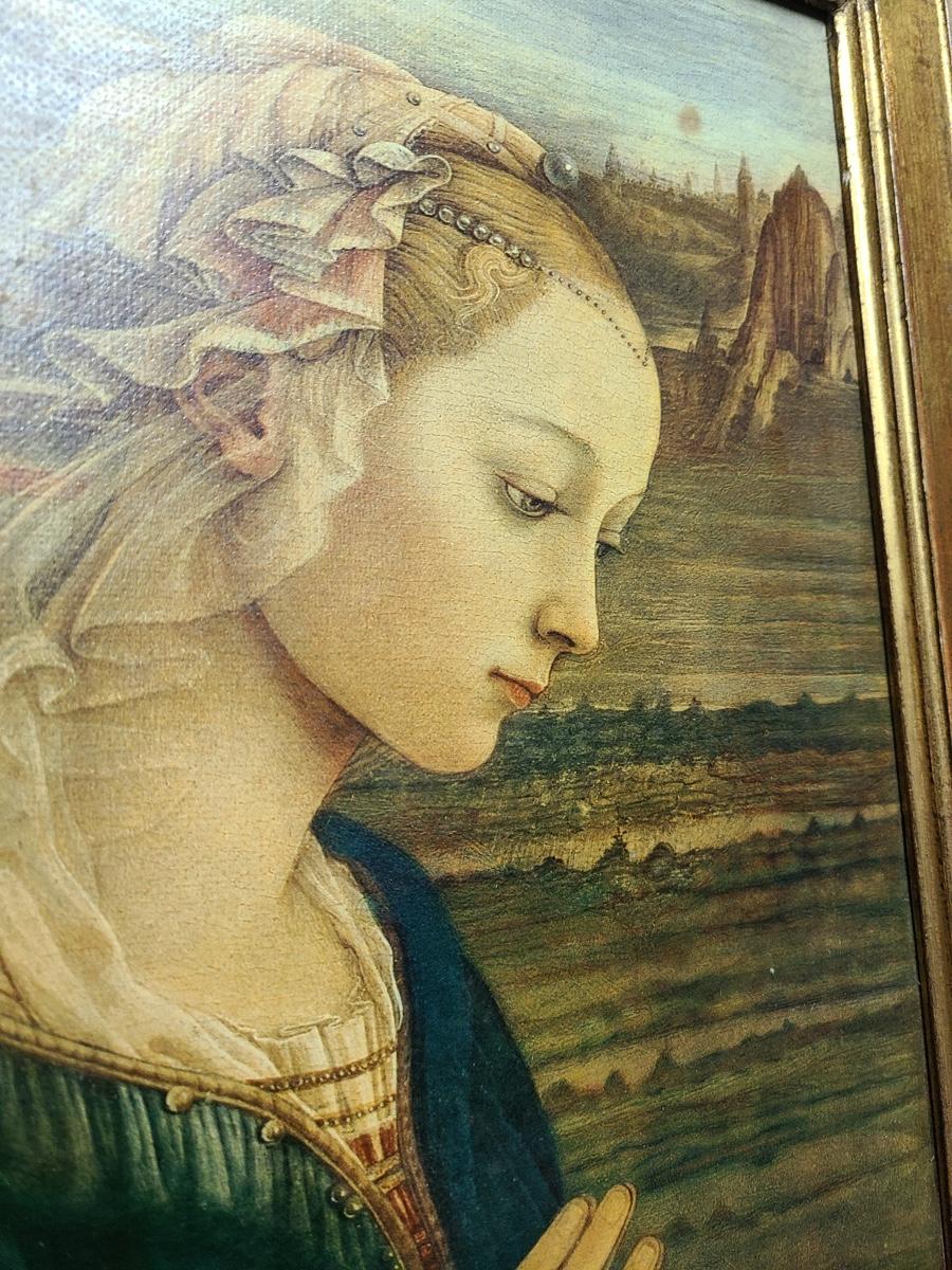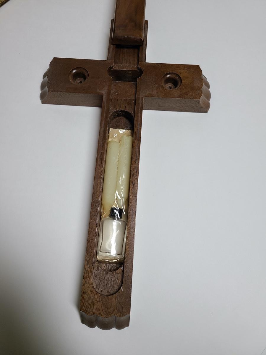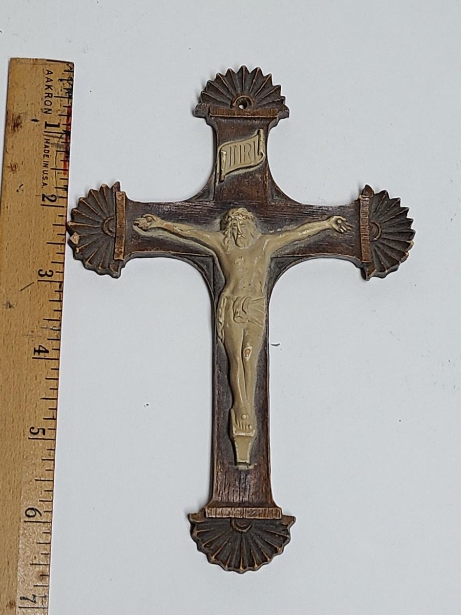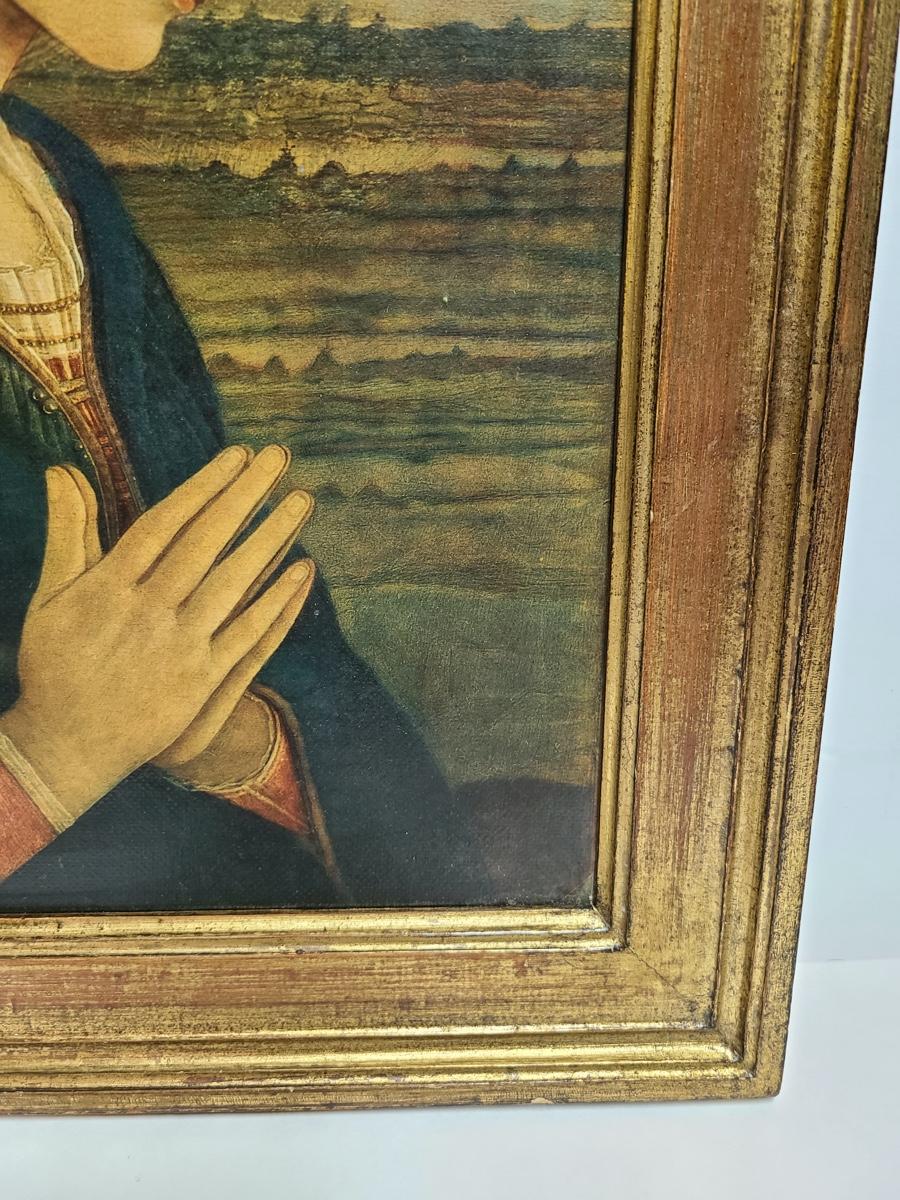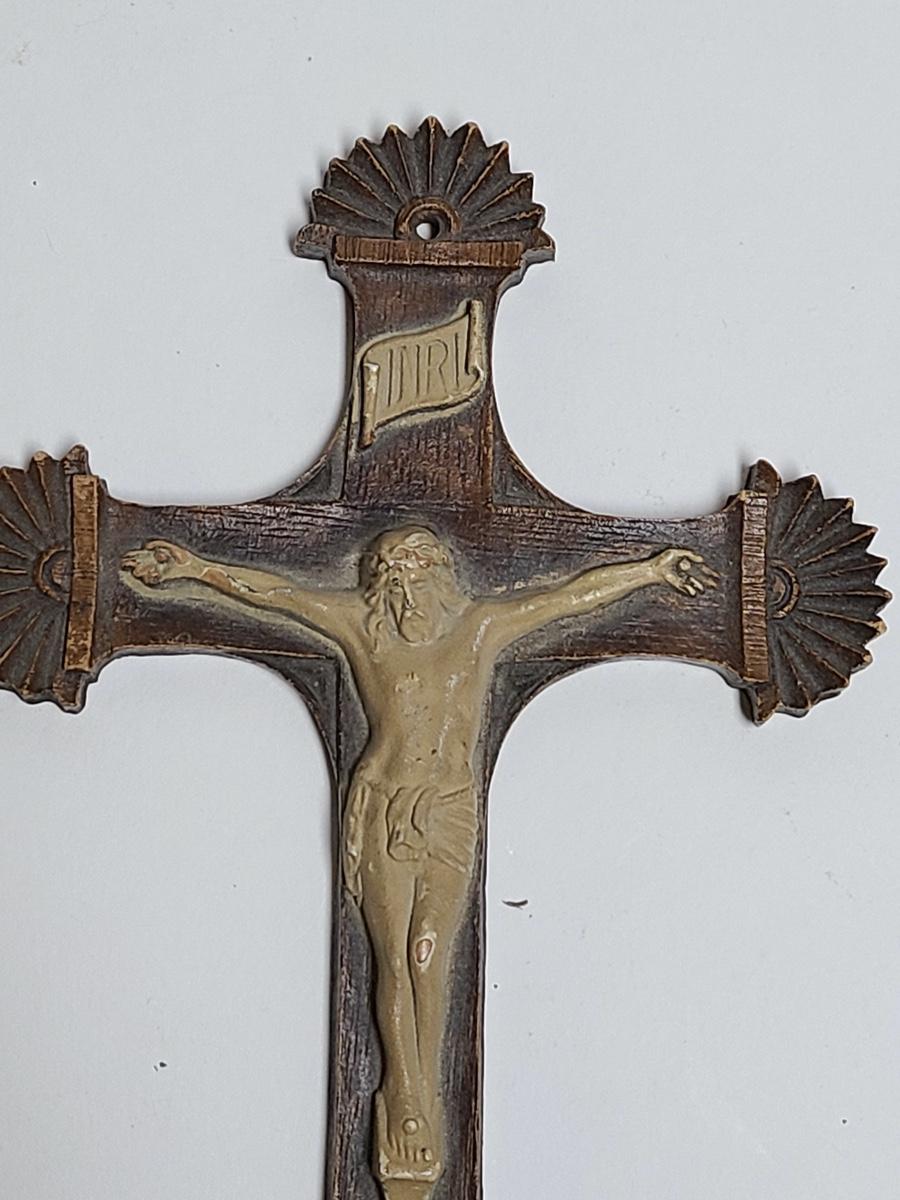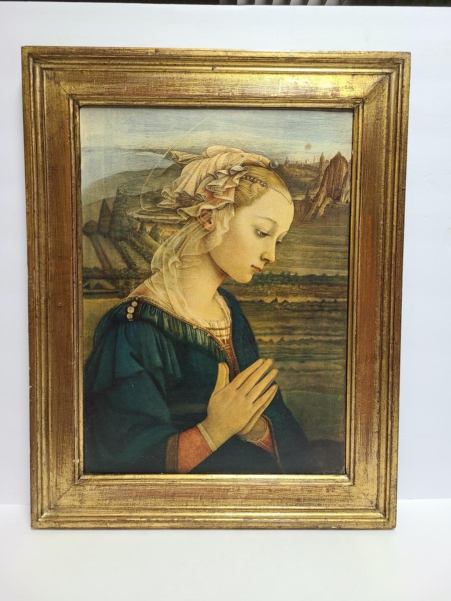 This artwork is gorgeous but is vintage, and not an antique. It looks to be a print of a painting on board in gold gild frame. From a distance looks like hand-done painting. Two crucifixes including a wall mount with holy water and candles, other is smaller in size. Please see all pictures. The pictures show condition, measurements if taken, and what is included in the lot. Due to the large amount that we photograph and the time frame, we are not always able to take measurements. All items unless noted, are pre-owned and have been used. If you purchased furniture, you must bring help. We do not allow one person to carry large furniture out on their own. Bring help, tools and a truck for the safety of our client’s homes, and your personal safety. Company policy. Thank you