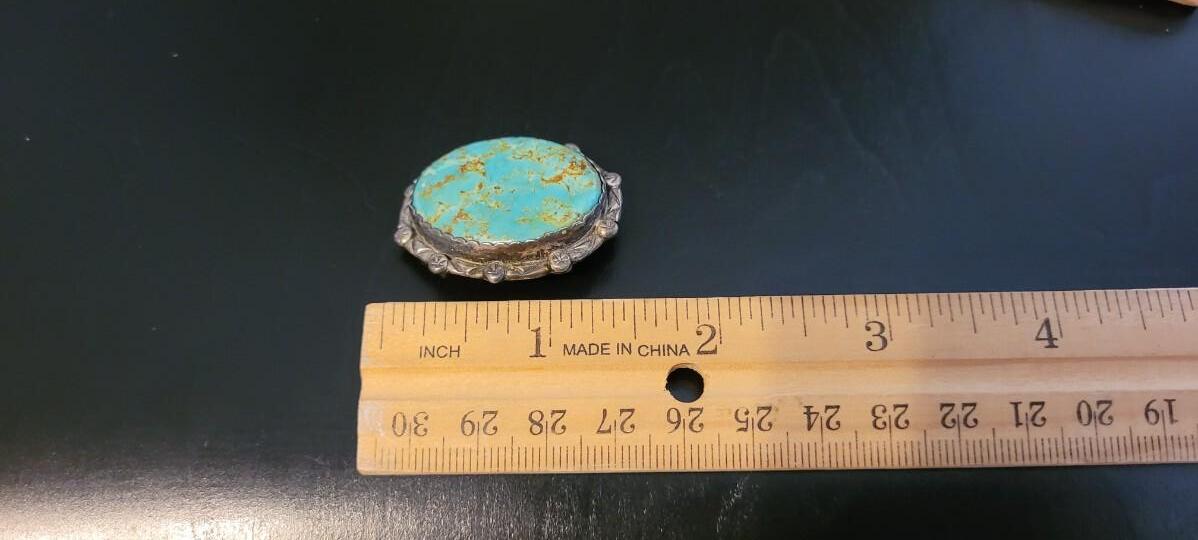 Outstanding stone selection for the centerpiece of this finely crafted Artisan Sterling Silver Native Amercian Brooch Pin.
