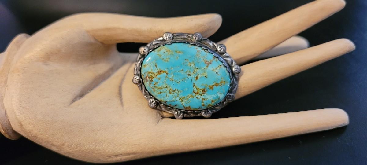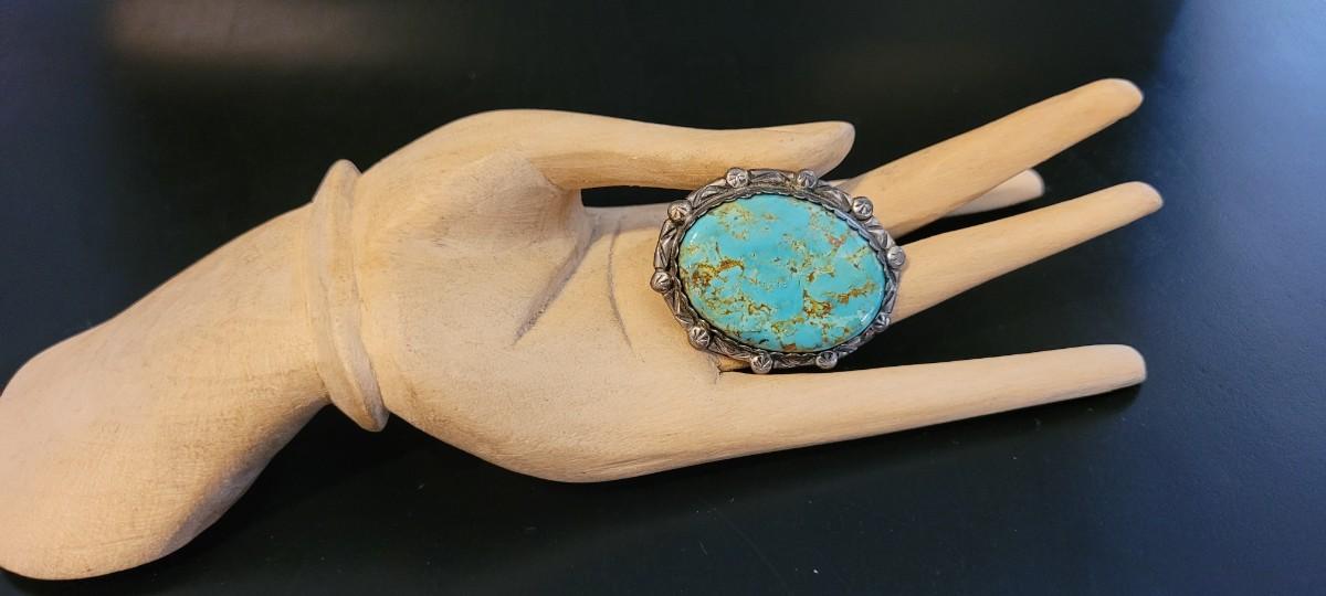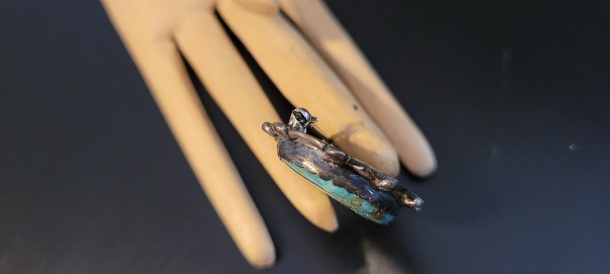 Lot 209: Vintage Handmade Native American STERLING SILVER and Turqoiuse Brooch Pin