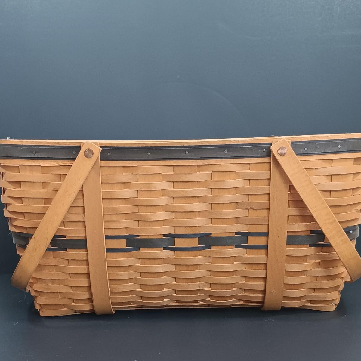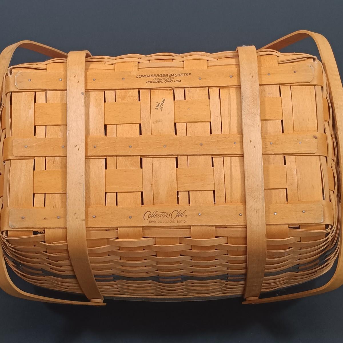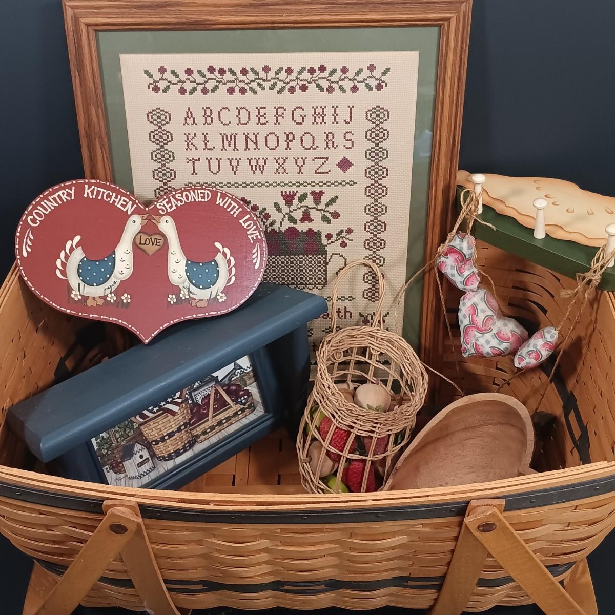 LOT 209K: Longaberger 1999 Collector's Club Picnic Basket w/ Country Primitive Decor