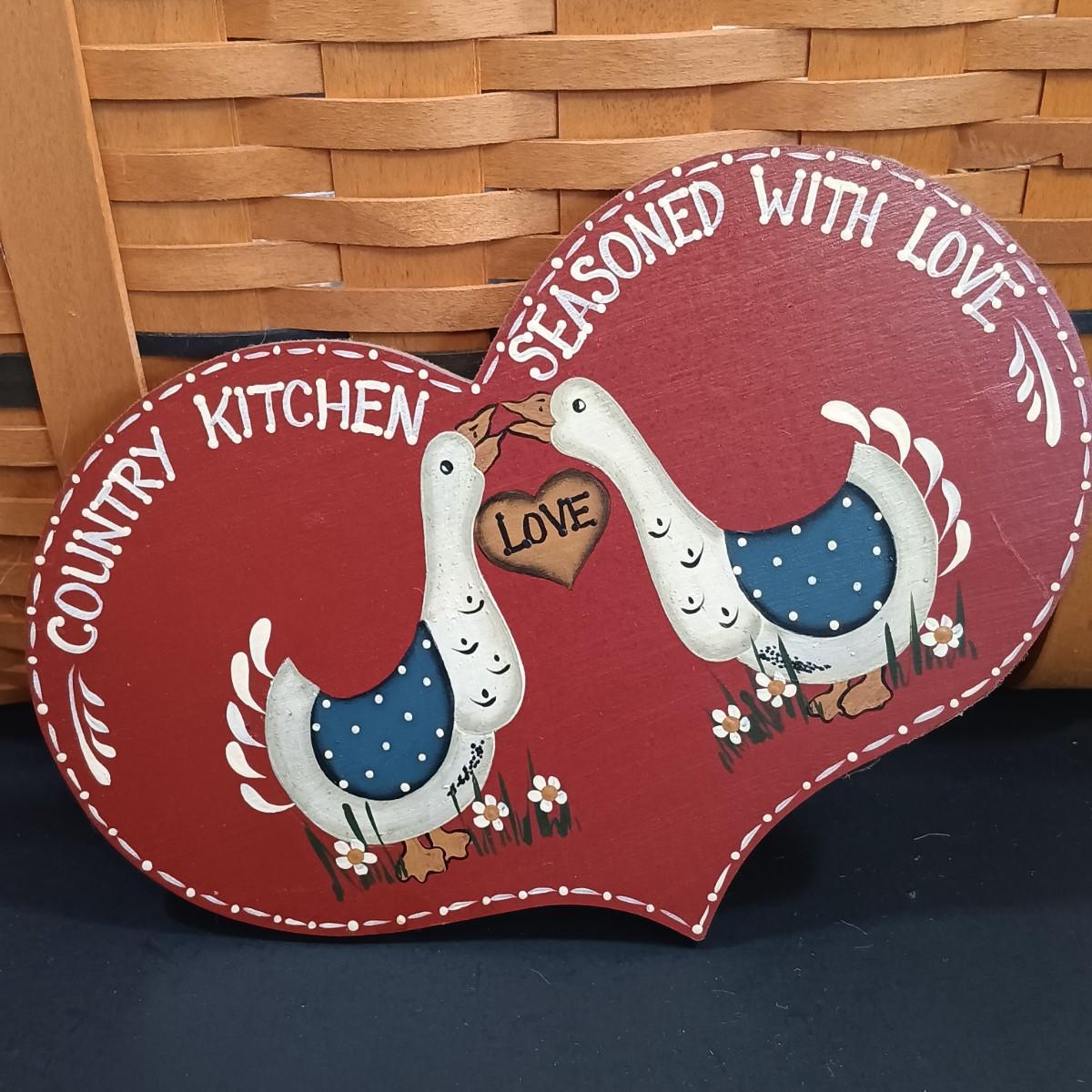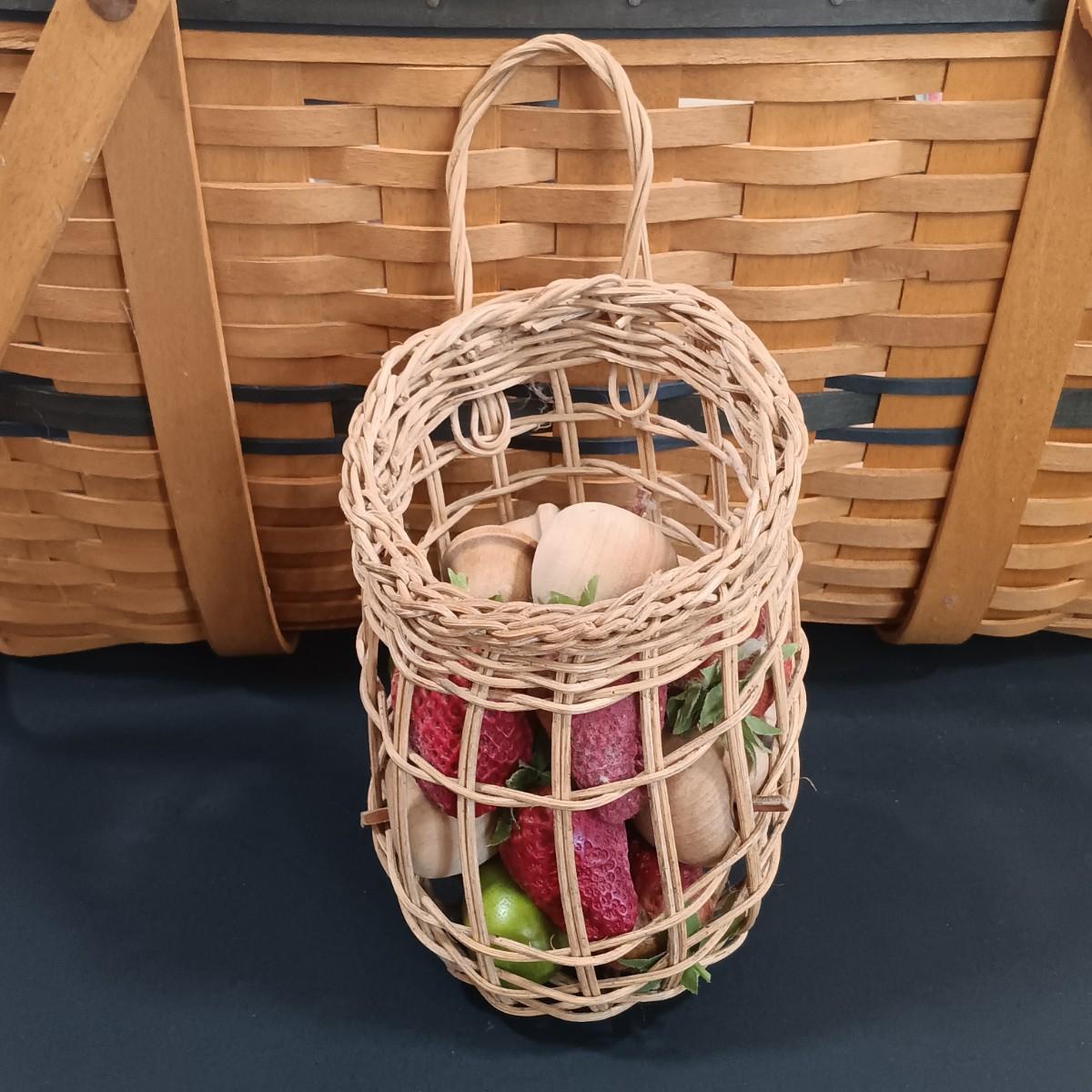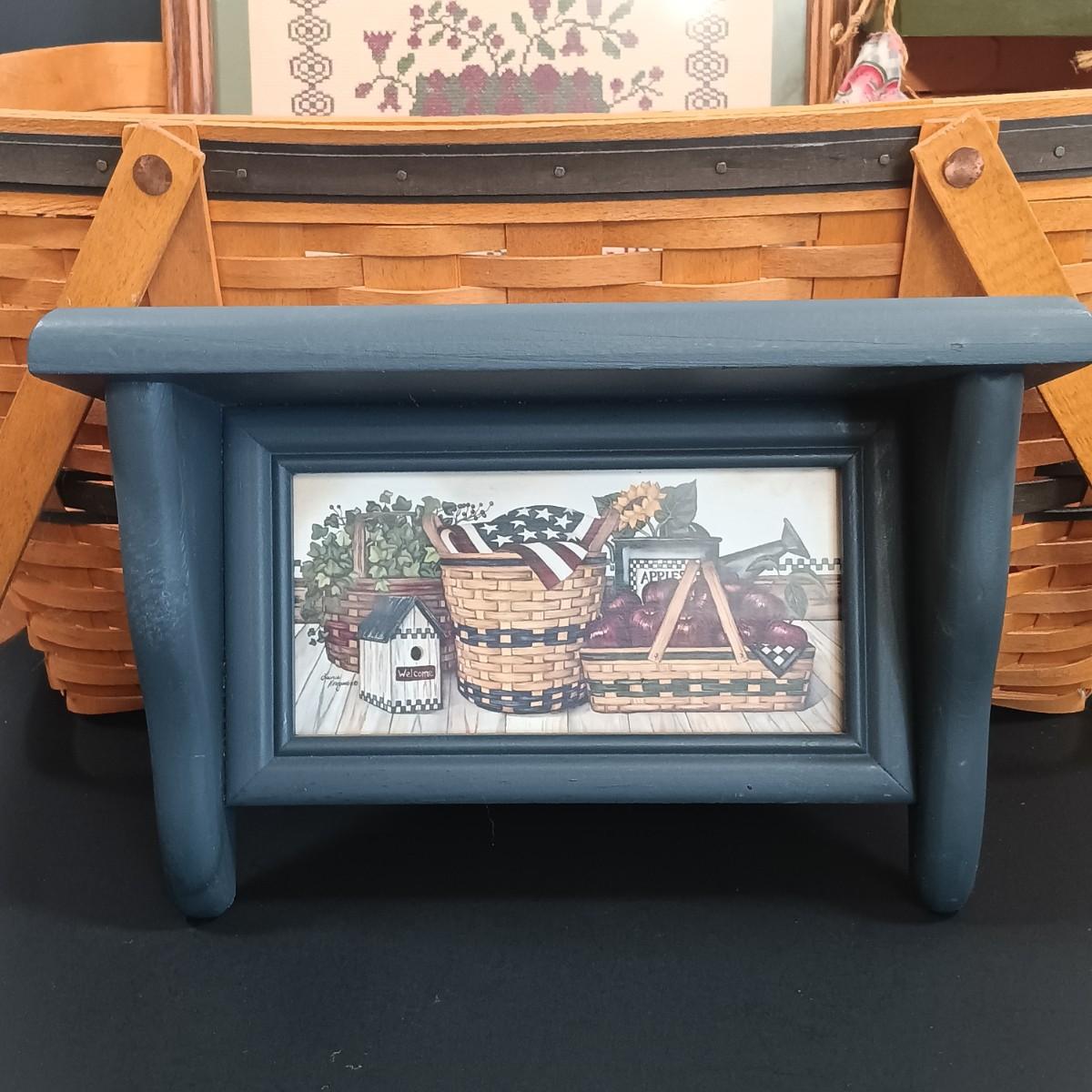 LOT 209K: Longaberger 1999 Collector's Club Picnic Basket w/ Country Primitive Decor