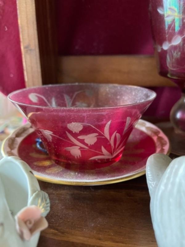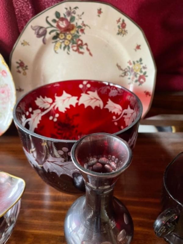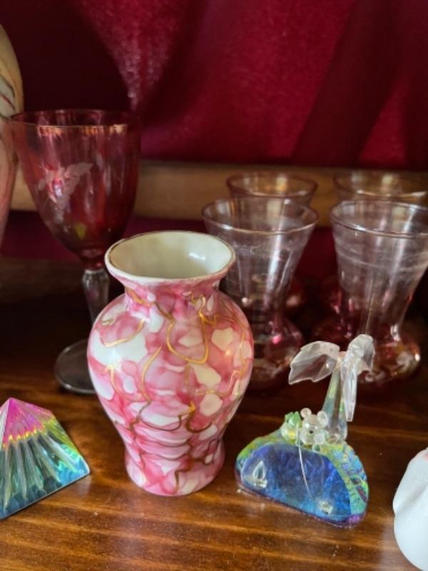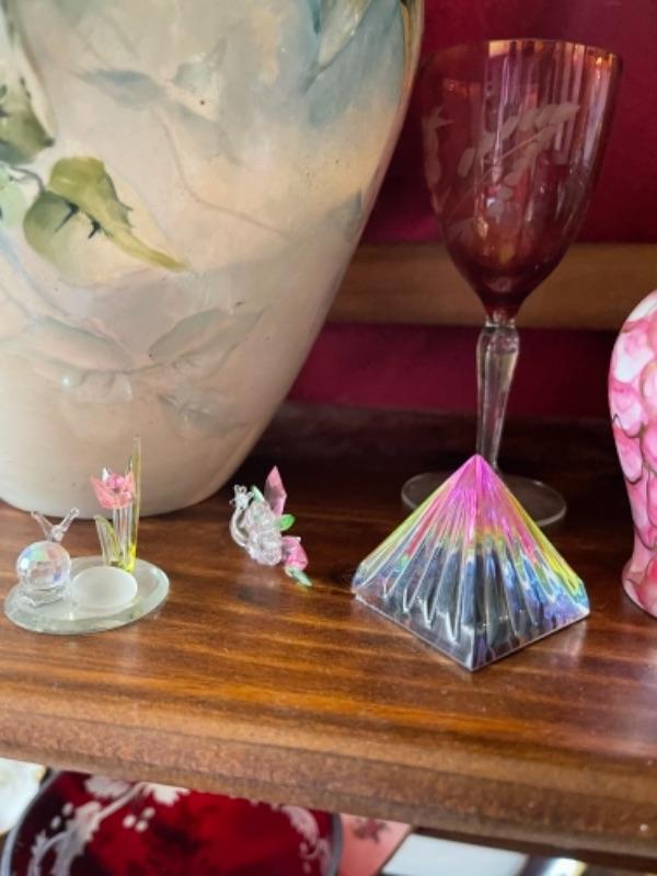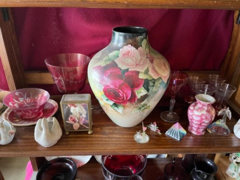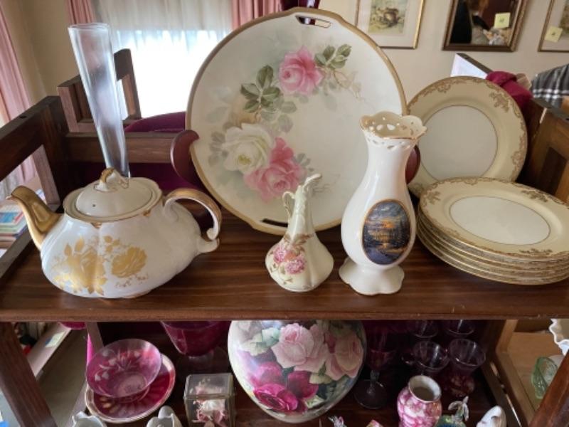 Lot 20L. Antique painted porcelain vase, lead glass, ceramic place cards, vases, china--$175