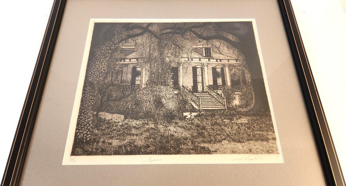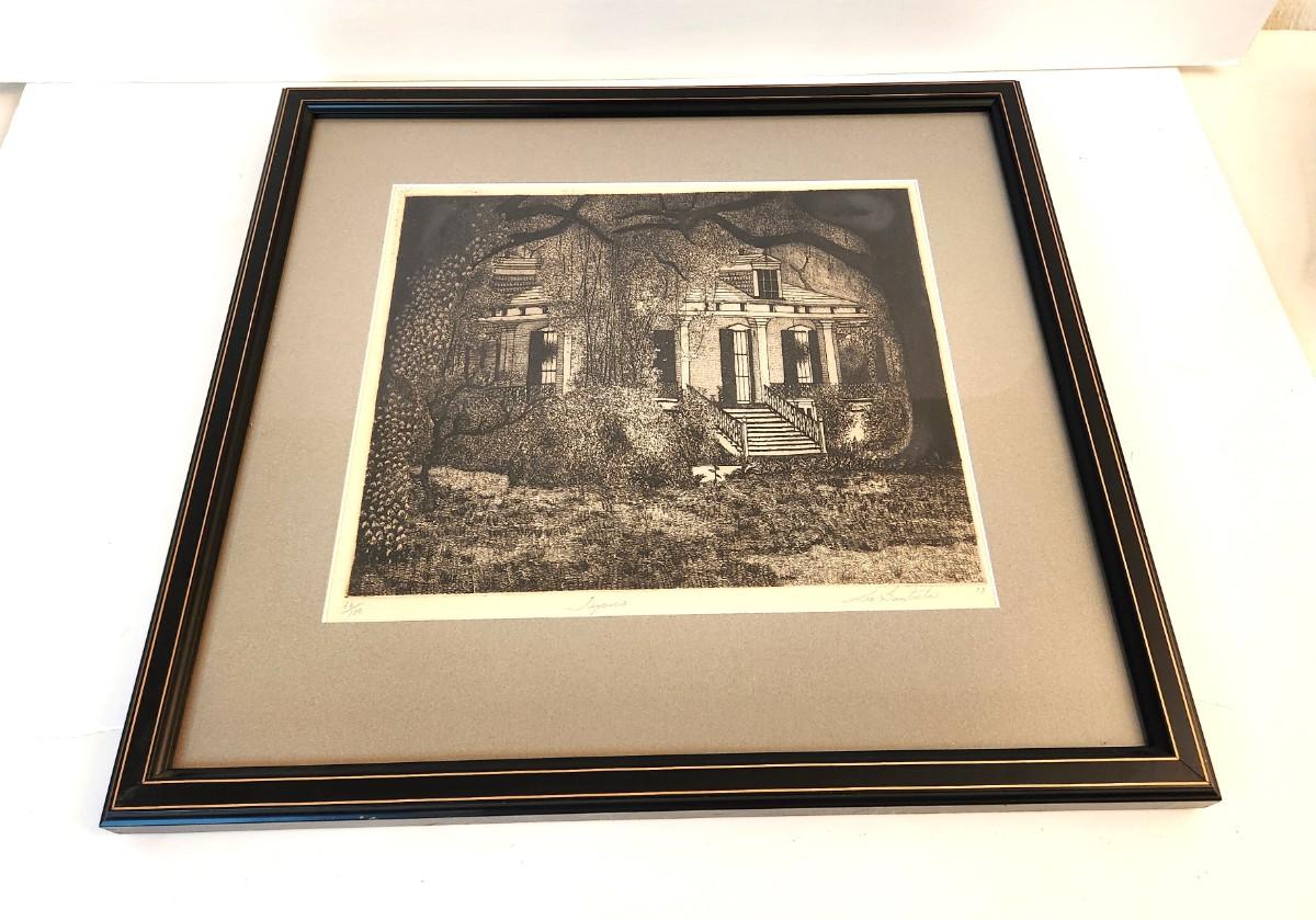 Ain't dere no more - lovely Tezcuco Plantation - Leo Bautista (b. 1952) signed/numbered woodblock - nicely framed. 66/100, pencil signed. 16" across, 15" tall. Good condition.