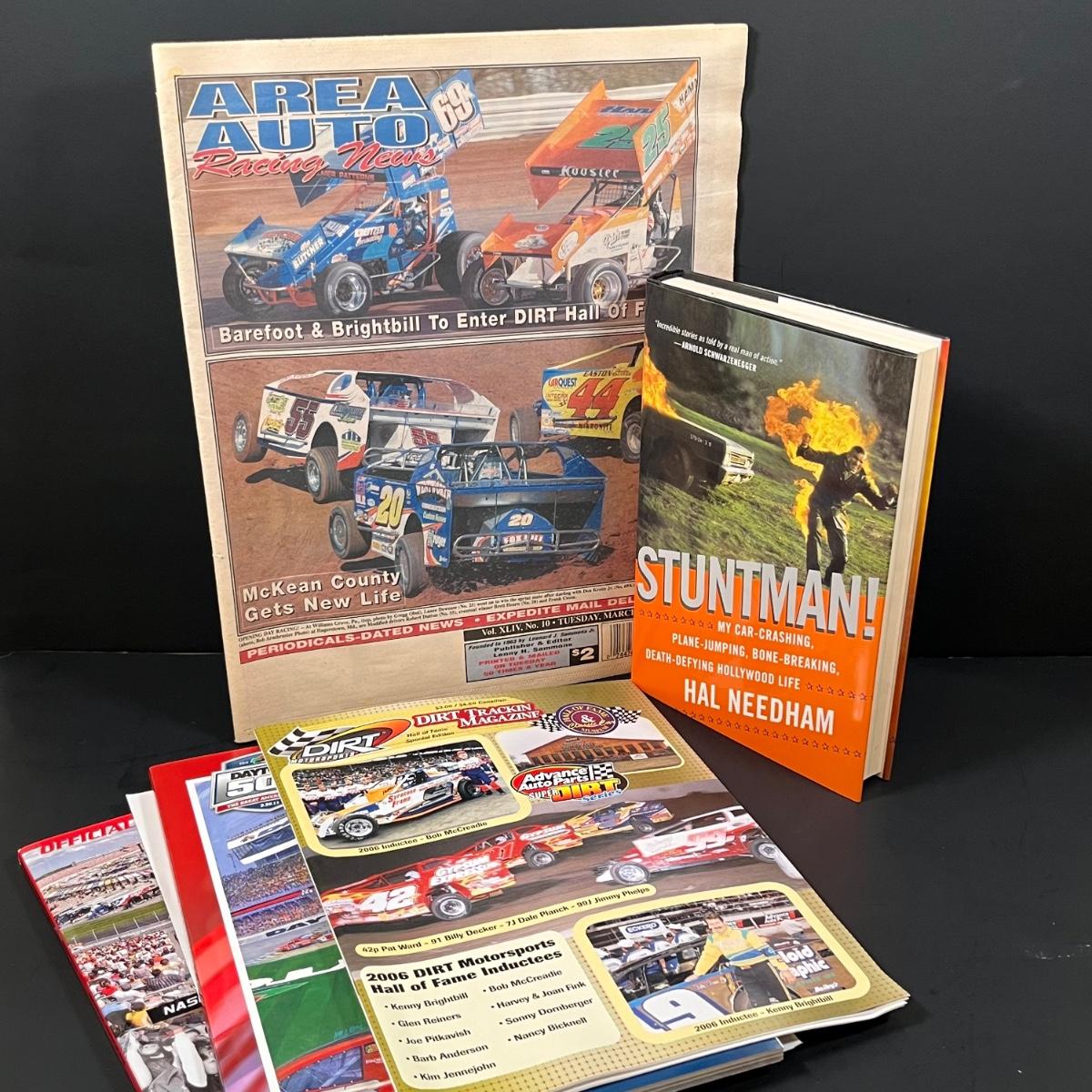 LOT 420L: Signed Hal Needham Stuntman! Book & Miscellaneous Racing Magazines + Newspaper