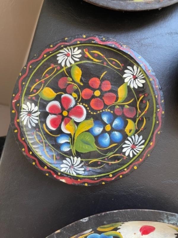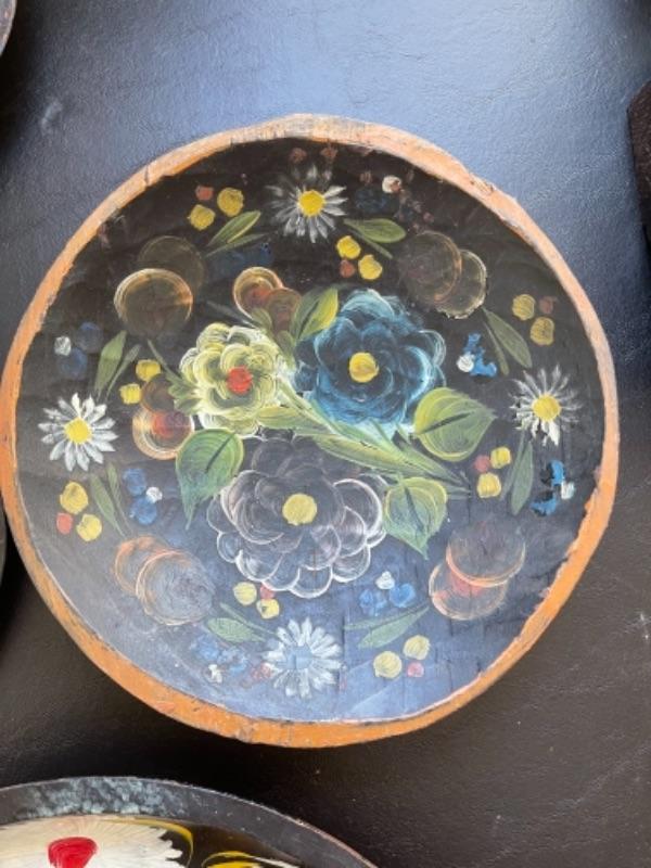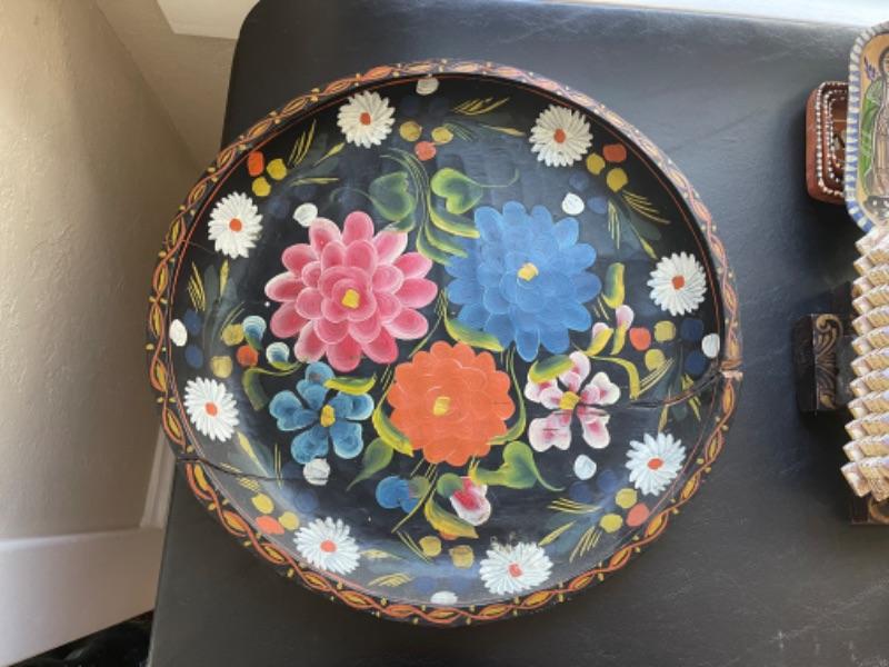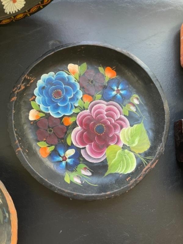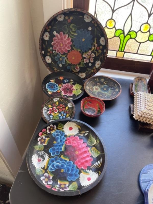 Lot 20LD. Collection of Mexican floral decorative wooden platters and bowls--$85