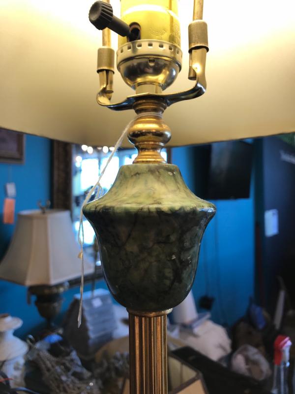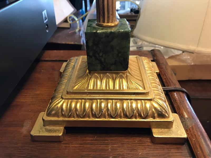Lot 20-Restored Gilt and Green Marble Buffet Lamp