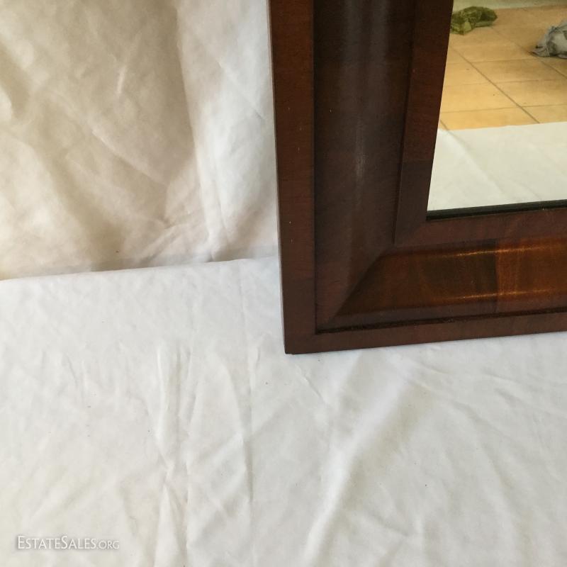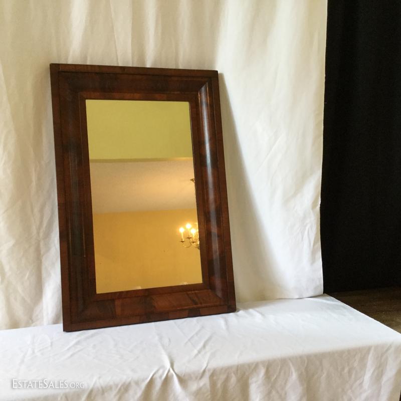Heavy, solid wood vertical-hanging wall mirror. Gorgeous wood.