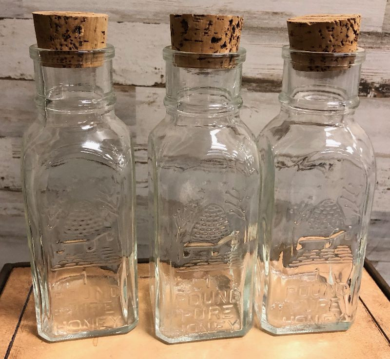 Lot 21 3 - 1 pound Jars of Honey with corks