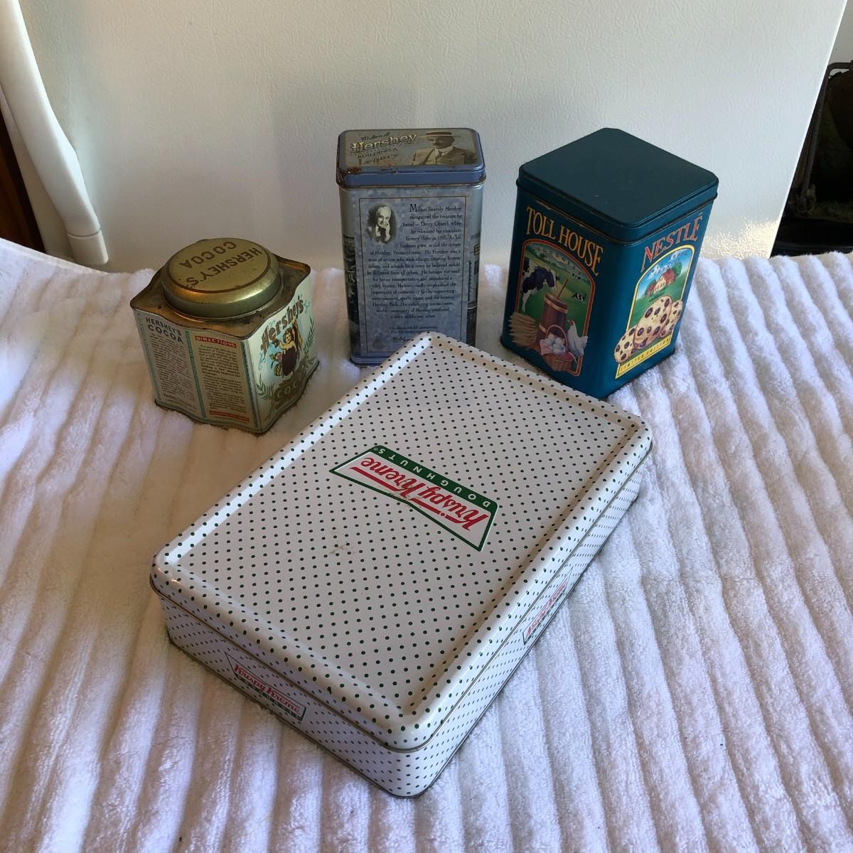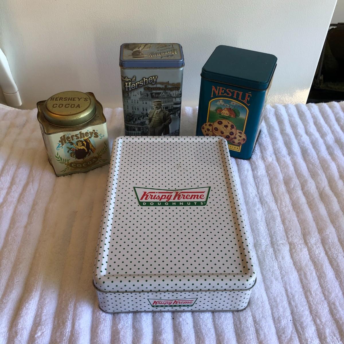 Krispy Kreme and chocolate - what else do you need? The Hershey blue tin is the only one that I could find a date on - 1996.