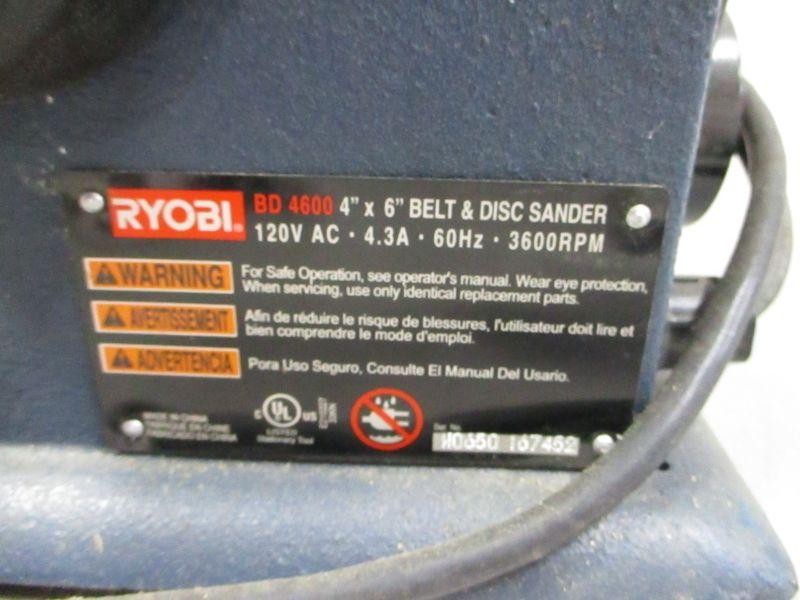 RYOBI BD 4600 4 X 6 BELT DISC SANDER 3.6K RPM - 4.3A