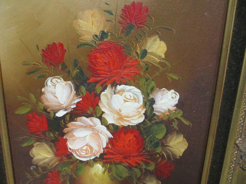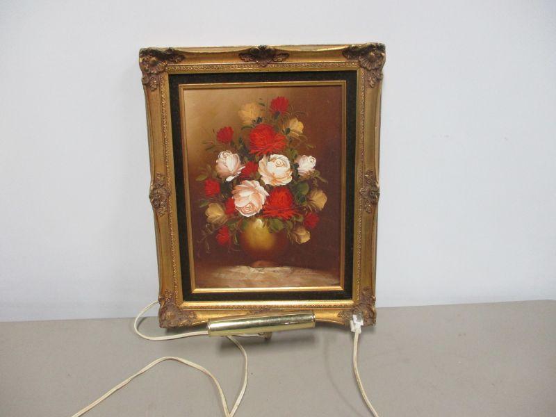 Lot 21 - Artist Signed Rose Picture With Lamp
