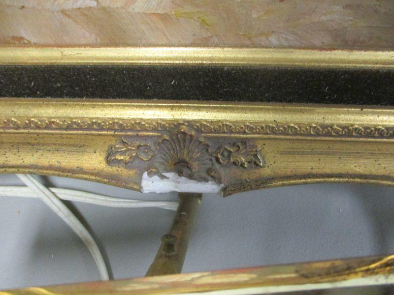 Please see pictures for condition frame does have some damage and picture may need cleaning - Size approx 21 x 17. Lamp untested