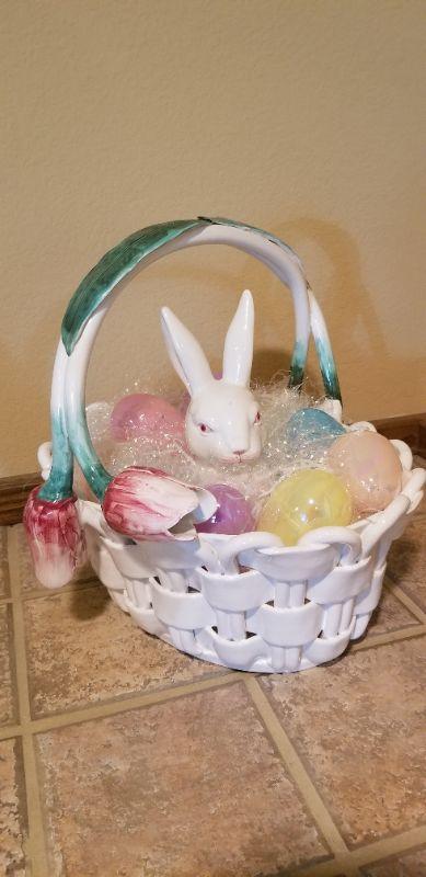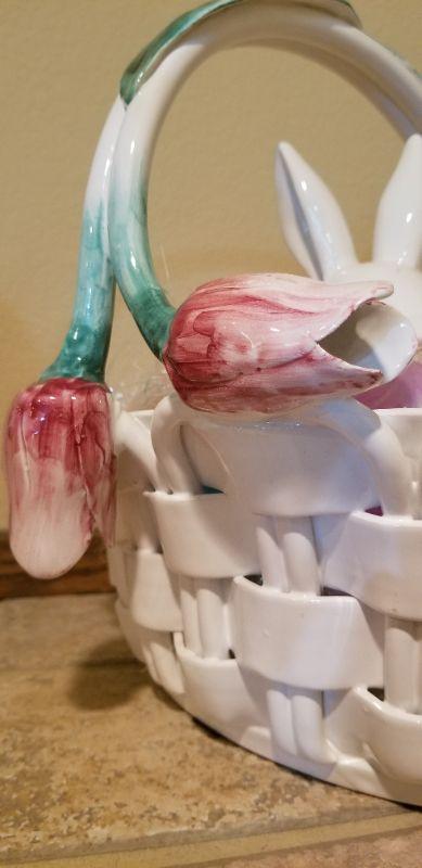 LOT #21: VIETRI Made in Italy Handpainted Ceramic Easter Basket w/ Bunny and Goodies