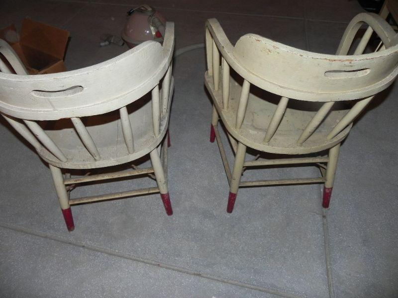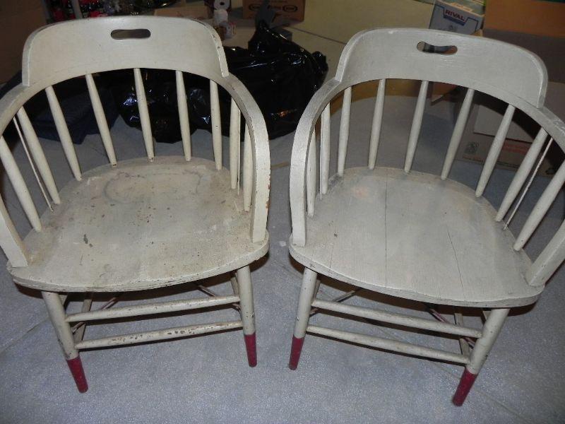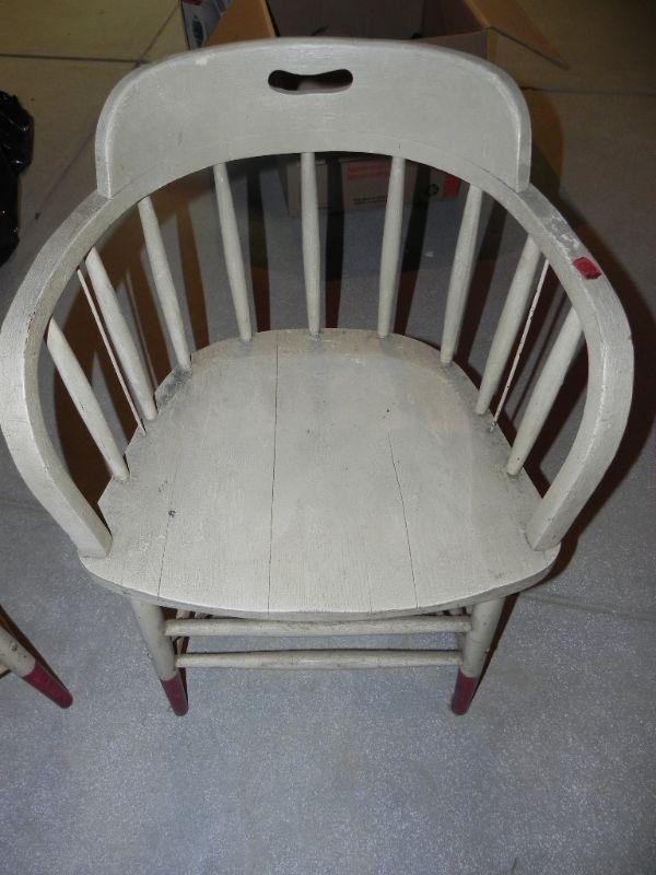 2 PAINTED WOODEN BARREL CHAIRS WITH SLAT BACK