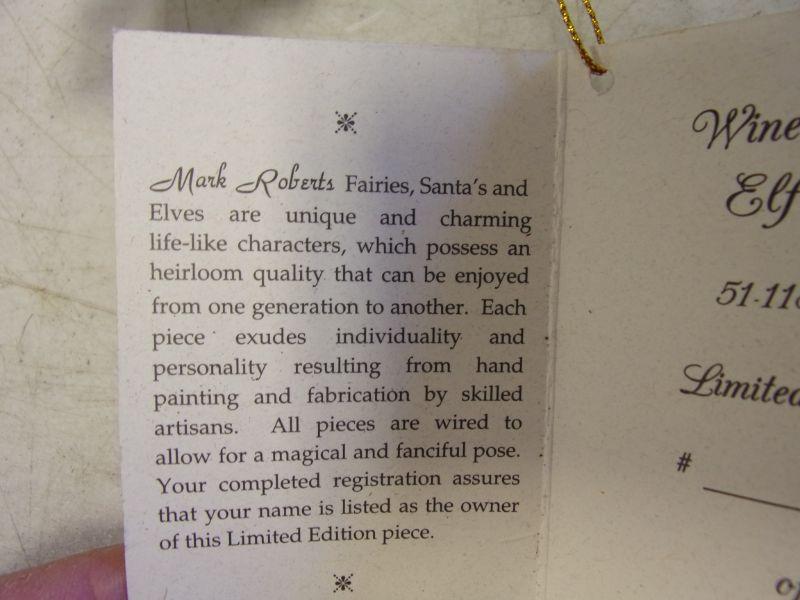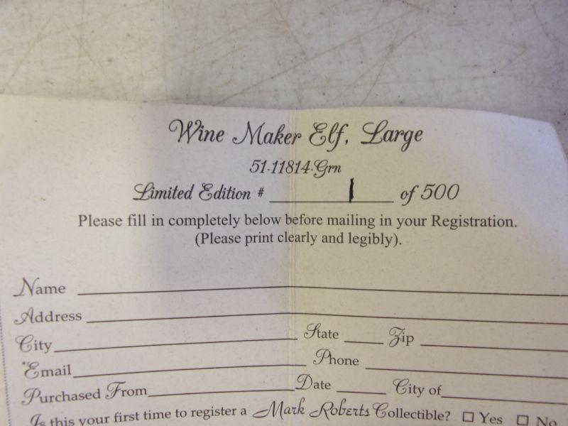 Mark Roberts Wine Maker Elf, Large - Please review pictures for condition they were displayed - Left Hand does have a crack