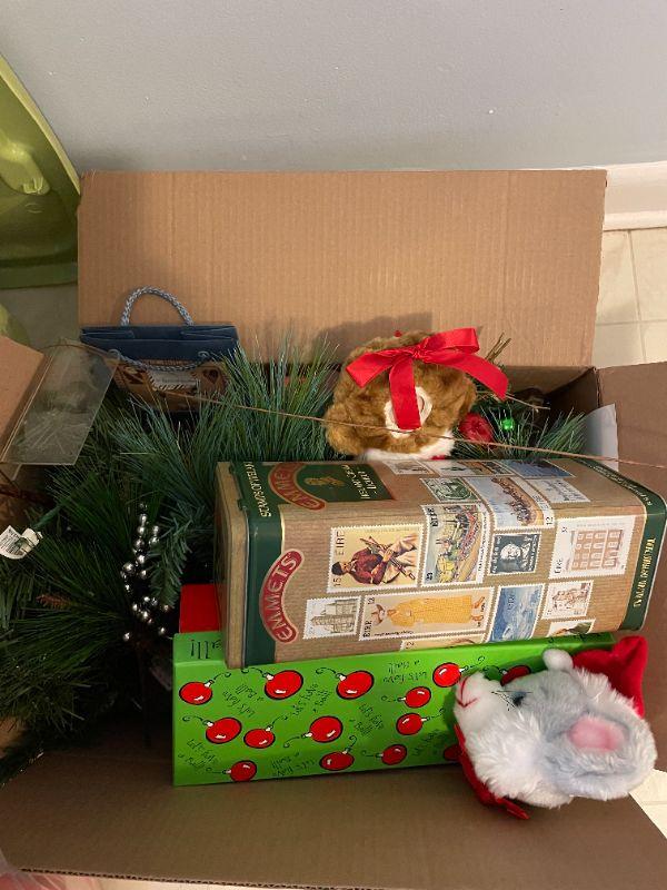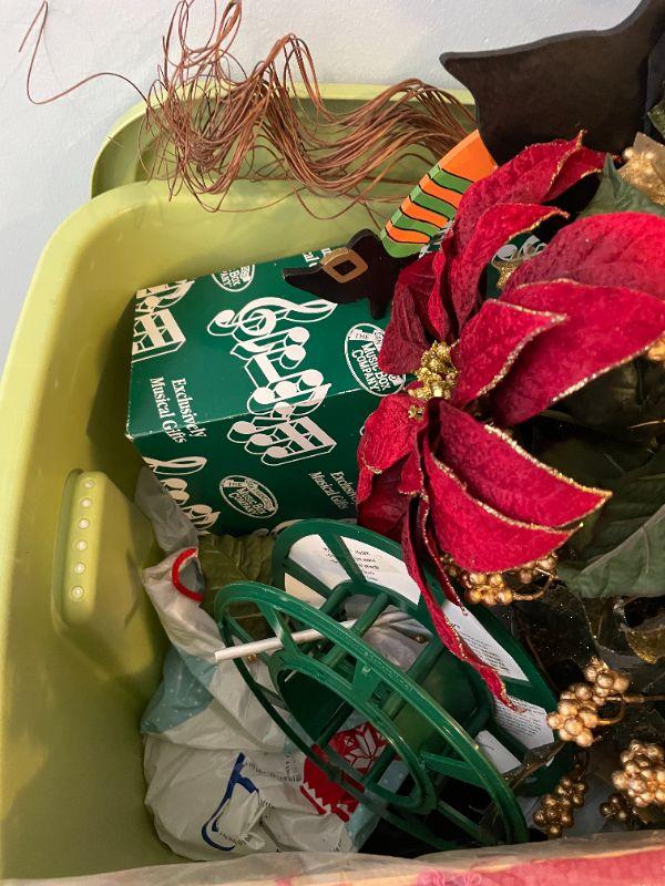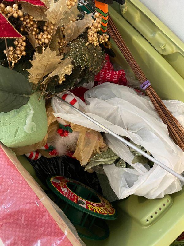 Lot 21 - (2) Boxes full of festive Christmas, Halloween Decorations, and fabrics