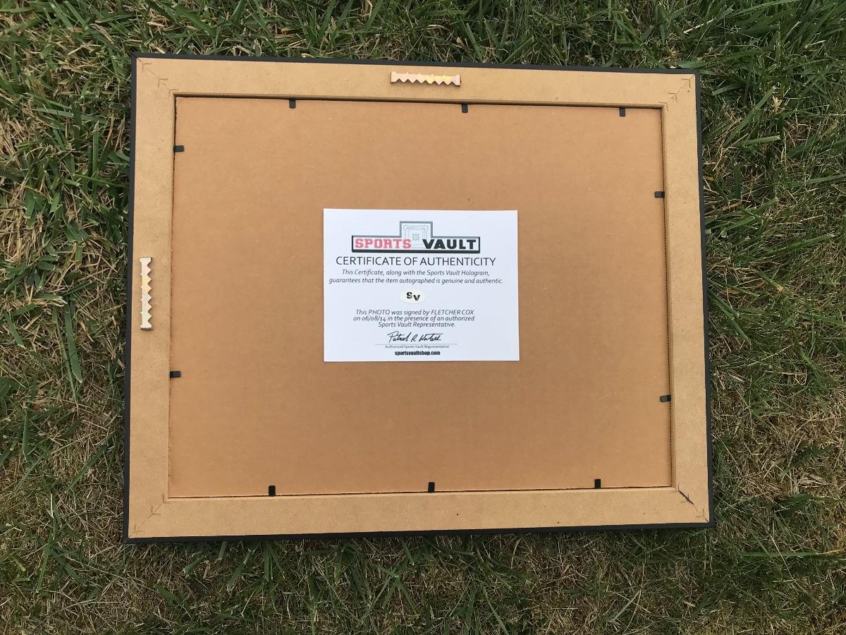 Framed, 16.5 x 13 inch photo of Fletcher Cox signed by him and including a certificate of authenticity.The pictures show condition, measurements if taken, and what is included in the lot. Due to the large amount that we photograph and the time frame, we are not always able to take measurements. All items unless noted, are pre-owned and have been used. If you purchased furniture, you must bring help. We do not allow one person to carry large furniture out on their own. Bring help, tools and a truck for the safety of our client’s homes, and your personal safety. Company policy. Thank you.