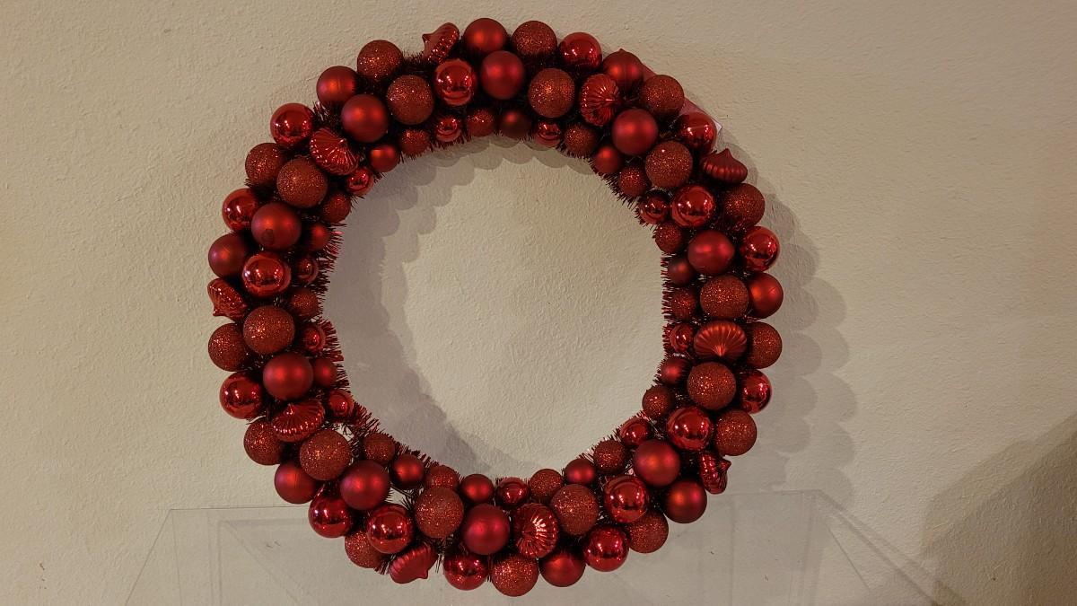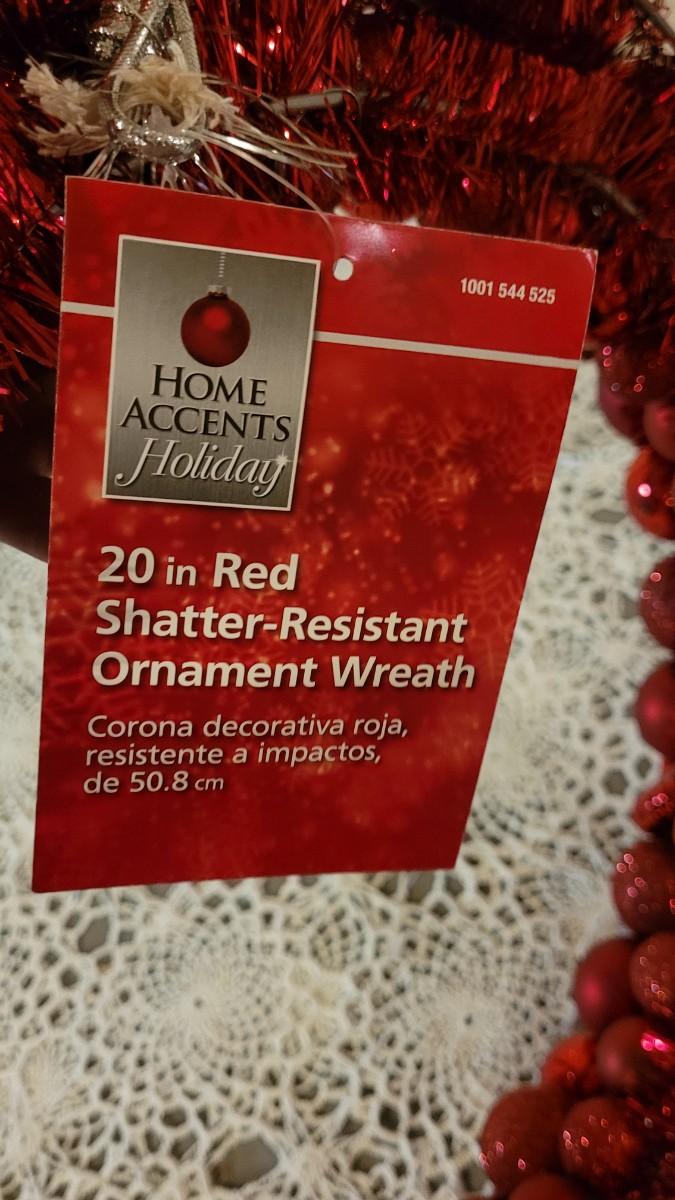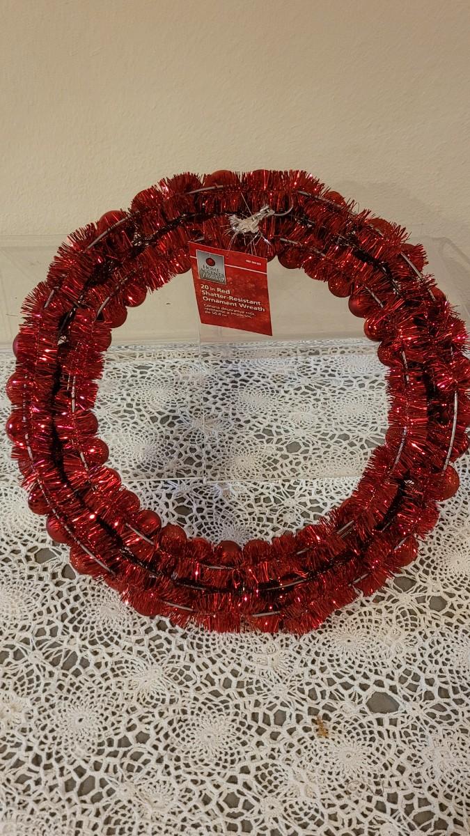 Lot 21: 20" Shatter Proof Red Ornament Wreath