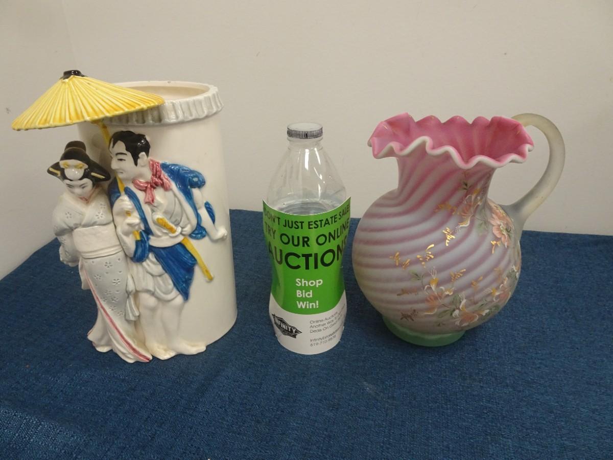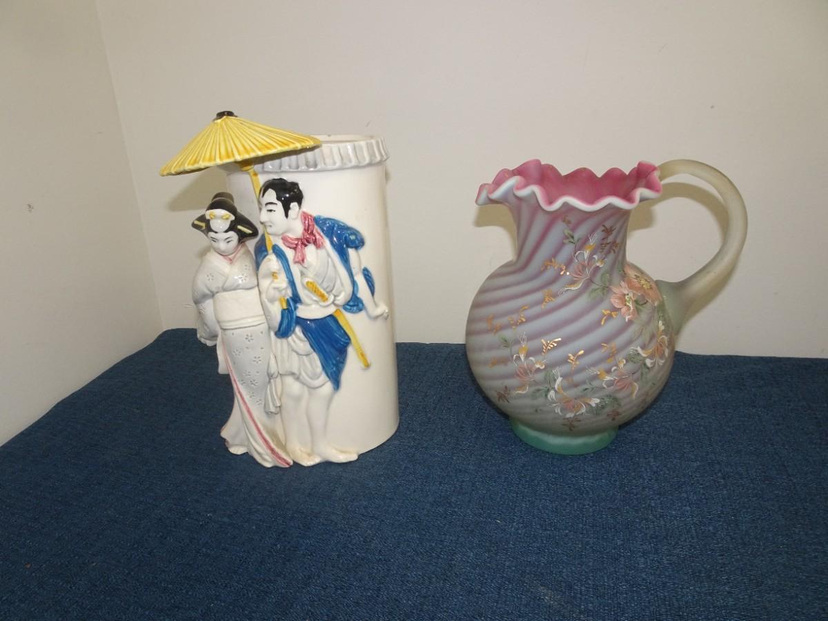 LOT 21. HOME DECOR. PITCHER AND VASE
